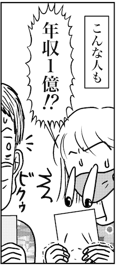 サイゾーウーマンカルチャーマンガこの男性が年収1億円!?!? カルチャー まんが『オバサンと言われても結婚したい!』52話 【アラフォー婚活ルポ】この男性が年収1億円!?!? 40代限定の婚活イベントは「プロフィールカード」に目が釘付け!! 2021/06/12 13:30 白戸ミフル(マンガ家) オバサンと言われても結婚したい! 年収1億!? 結婚したら良い生活できるんだろうなあ 次のページ なにが「素敵」じゃ! 前のページ123次のページ 関連記事 【アラフォー婚活ルポ】う、嘘でしょ……!? 40代限定の婚活イベントで涙!! 今すぐ帰りたい!【アラフォー婚活ルポ】見た目がタイプじゃなくても、会って変わるなんてこと、ホントにあるの?【アラフォー婚活ルポ】初デートに、きっ、着物で登場~!?!? 彼の仕事は……何者?【アラフォー婚活ルポ】やばっ、マルチ勧誘と勘違いされてる!? 楽しいデートが面倒くさい結果に……【アラフォー婚活ルポ】瑛太似のイケメンとデート敢行! 喜んだのも束の間……涙の顛末 その他の作品を読む