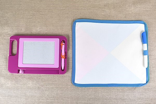 サイゾーウーマン暮らし100均・雑貨セリアの汚れないお絵かきグッズ 暮らし 【100均ずぼらシュラン】 【100均レビュー】セリア「お絵かきグッズ」は、紙もペンもいらず消すのも簡単! 2021/06/17 13:00 ずぼら均子(ライター) 100均セリア 子どもにお絵かきをさせると、周りが見えなくなるぐらい夢中になりますよね。子どもが自分の世界に入り込んで描いた絵は、時に大人の想像を超えることも。そこで今回は、セリアのお絵かきグッズを紹介します。子どもの表現力を引き出す、一味違ったアイテムを見ていきましょう。 商品を並べたところ(C)サイゾーウーマン すらすら書いてさっと消せる! セリアの「マグネット式お絵かきボード」 便利度:★★★★☆(消しカスが散らばらない) コスパ:★★★★☆(何度も消したり書いたりできる!) 持ち運び:★★★☆☆(バッグにも入るちょうどいいサイズ感) 商品パッケージ(C)サイゾーウーマン 最初に紹介するのは、セリアの「マグネット式お絵かきボード」。スクリーンにマグネットペンをあてると、絵や文字が書ける商品です。 絵をかいてみたところ(C)サイゾーウーマン さっそく書いてみることに。先が磁石になっているペンをスクリーンにあてるだけでスラスラ書くことができました。消したい時は、下のレバーを左右に何度か動かせばOK。消しゴムで消すとゴミが出ますが、これならお掃除も楽ちんです。 絵を消したところ(C)サイゾーウーマン ポイントは、お絵かき中に机や服が汚れないところ。ペン先が磁石のため、子どもが誤って壁などに落書きしても汚れる心配はなさそうです。大きさもミニサイズなので、持ち歩きにも便利。 次のページ 水ペンなのに4色の絵が描ける! セリアの「お水でらくがきシート」 12次のページ 関連記事 【100均レビュー】セリアとダイソーの「シューズグッズ」、100円以上の働きをしてくれて便利!100均(ダイソー・セリア)レビュー「つかみどりゲーム」他全8アイテム【週間まとめ5/31~6/11】【100均レビュー】 ダイソー「つかみどりゲーム」、1人でも2人でも楽しめるクオリティーがすごい!【100均レビュー】ダイソー「学べるカード」、親子で楽しめて子どもと一緒に生きもの博士に!?ダイソーの「IQおもちゃ」対決! 楽しいだけでなく遊びながら脳を活性化