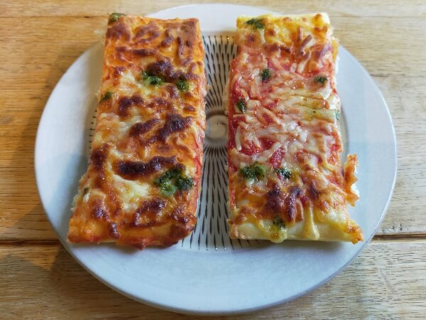 サイゾーウーマン暮らしトレンドシャトレーゼ【糖質86%カットピザ】レビュー 暮らし トレンド商品ガチレビュー シャトレーゼ【糖質86%カットピザ】の魅力とは? 通常ピザと食べ比べした結果……香りや食感に大きな違いが!? 2021/06/19 20:00 icci(ライター) トレンド 糖質カットピザは、少し香りが独特で「つるつる」食感!? 見た目の次は「香り」をチェックします。 これが、見た目に反して全然違いました! とくに、生地の香りが違います。通常のピザは、ピザらしい小麦の香りがふわっと香ります。一方、糖質カットピザは、少し独特の香りがしました。特徴ある、素朴なビスケットのような粉っぽさのある香りです。 見た目は同じながら、香りや食感は違います(C)サイゾーウーマン 改めて糖質カットピザの原材料を見返してみると、小麦の代わりに使われている小麦たんぱくのほかに、製菓材料としてポピュラーな「アーモンドプードル」や「シトラスファイバー」などが使われています。このあたりが香りの違いを生んでいるのでしょうか。 次に「食感」を比べてみます。まずは通常のピザから。いわゆる一般的な丸いピザとは違い、シャトレーゼのピザは耳がないので、生地全体がふっくらしています。ふっくらしつつ、適度にもちもちしています。 糖質カットピザのほうは、口に入れた瞬間は通常のピザのようにフカフカしていましたが、噛んでいくうちに少し質感が変わってきました。もちもち、というより、ねっちりという感じです。一緒に食べてみた4歳の次男は「なんだかつるつるする」と表現してたのが、当たらずとも遠からずで、小麦たんぱくならではの食感かもしれません。 味は、チーズの塩味やトマトソースの酸味にバジルソースのアクセントが効いており、どちらも遜色ない美味しさでした!が、香りと食感も含めての味、となると食べ慣れてている通常のピザに軍配が上がりました。 糖質カットピザ「5種のチーズ」も比較! 「オーブンでそのまま焼けるピザサラミ」と「糖質86%カットのピザ 5種のチーズ」も焼いてみました! (C)サイゾーウーマン まずはピザサラミの焼き上がりがこちら。 角切りのジューシーなサラミが乗って、旨味と食べ応えが一気にアップ。しっかり味なので、おつまみにも良さそうです。 (C)サイゾーウーマン 次のページ 糖質カットピザ「5種のチーズ」はマルゲリータほど○○が気にならない 前のページ12345次のページ 関連記事 ドラッグストア「ウエルシア」オリジナル、人気の「糖質オフ」食品レビュー! 「おなか満たせない」「コスパ悪い」ガッカリ食品も?「リバウンドはしません」管理栄養士が、“糖質制限ダイエット”のウワサに斬り込む!くら寿司・はま寿司・スシロー、プロが選ぶ“海鮮丼おすすめNo.1”発表! 回転寿司チェーンのテイクアウト・持ち帰り限定メニューを比較レビュー【カルディ調味料】最新おすすめ15選! 人気のハリッサ・ぬって焼いたらカレーパンなど、最速アレンジレシピも【2021年6月】サイゼリヤ・ジョリーパスタ・ポポラマーマ、プロが選ぶ“パスタNo.1”発表! 人気イタリアンチェーン3店のメニューを比較ジャッジ