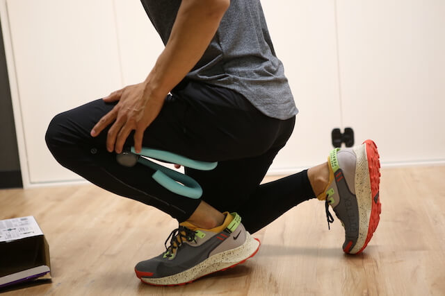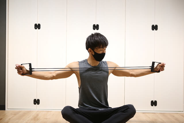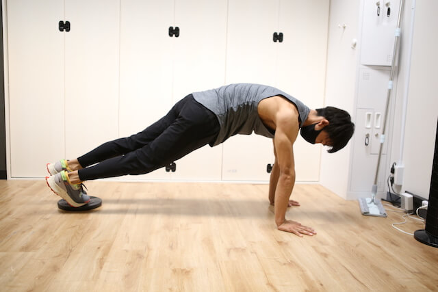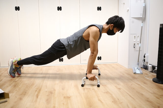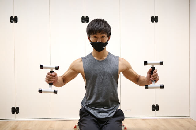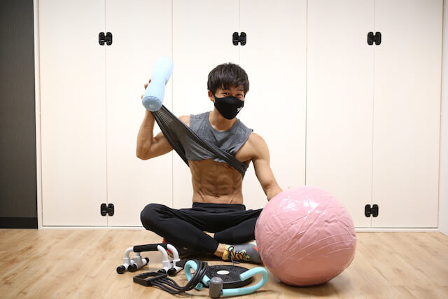 サイゾーウーマン暮らしカラダダイソー筋トレグッズ、300円のコレは買い 暮らし 100均でズボラ本格トレーニング 【ダイソー】筋トレグッズ、300円のコレは絶対買い! 「Tarzan」腹筋チャンピオンが実際に使って徹底比較レビュー 2021/07/10 12:30 池守りぜね(ライター) ダイソー100均トレンド フッキン王子ことカツオさんがジャッジ!(C)サイゾーウーマン 長引くコロナ禍とあって、運動不足解消を謳う商品がさまざまに販売されていますよね。100円ショップのダイソーでも、筋トレやストレッチグッズが多数展開されていて、その金額は100〜600円とお手頃! しかし、筋トレに使われるフィットネスグッズの平均価格帯は2,000円から3,000円ともいわれています。本当に、数百円程度のアイテムが筋トレに役立つのか……? 今回は、「TARZAN」(マガジンハウス)腹筋選手権で優勝した「フッキン王子」こと、腹筋インストラクターのカツオさんに、ダイソーの使いやすさを実際に試して、評価してもらいました! 果たして、プロのお墨付きを得るグッズはあるのでしょうか? 上半身のシェイプアップグッズ プッシュアップバー 330円:3000円のアイテムも遜色ナシ! プロの評価:〇(買ってよし! ) プッシュアップバー(C)サイゾーウーマン トレーニング初心者には、あまり馴染みのない筋トレグッズ「プッシュアップバー」。腕立て伏せを行う際に、このバーを握りながら行えば、短期間で効果的に鍛えることができます。正直、見た目はチープで300円らしいアイテムですが、これが意外にも高評価なのです。 「この商品は実際に触ってみると頑丈にできていて、壊れる心配はなさそう。親指でグリップを握りやすい。2,000〜3,000円で売られているプッシュアップバーと、なんら遜色ないですよ。これは驚きました」 合格点のような気配ですが、実際の使い心地はどうなのでしょうか。筋トレ初心者に基本の使い方も教えてください。 肩の下に手がある状態にして、二重顎になるくらい顎を引く(C)サイゾーウーマン 「まずは、プッシュアップ。肩の下に手がある状態にして、顎を引きます。背中のセントレーション(関節の中心)を保つようにしてください。頭からお尻にかけて、斜め一直線をしっかりと作ります。顎の位置がポイントです。自分で二重顎を作る感じに引いていきます」 プッシュアップ一つでも、意外とポイントが多いんですね。どのように意識すれば効果的に筋トレが行えるのでしょうか。 <ポイント>プッシュアップバーはバストの位置に設置!(C)サイゾーウーマン 「バストトップライン上に、プッシュアップバーがくるようにします。上すぎず、下すぎずライン上に合わせる。こうすることで、大胸筋が働きやすい筋肉になるんです。これを使えば、最大に伸ばすところまで筋肉を伸ばせる。筋肉を負荷(重力)に逆らう状態で伸び縮みをさせるのが筋トレの基本なんです。プッシュアップバーのおかげで、ちゃんと筋肉を伸ばせます」 使い心地はどうなのでしょうか? 「300円以上の効果あり! お墨付きです」 チューブエキスパンダー 330円:ペットボトルでトレーニングしたほうがマシ プロの評価:×(300円はもったいない! ) チューブエキスパンダー(C)サイゾーウーマン ボクシングジムなどで、筋肉増強のトレーニングのために使われているイメージが強い「チューブエキスパンダー」。強度が高い製品が多いため、女性には取り扱いが難しいイメージがありますが、300円ならトライしてみたいもの。 ゴムは2〜3本がベスト(C)サイゾーウーマン 「強さは5段階調節できます。ゴム5本が最大の負荷で、本数を少なくすれば負荷を減らせます。女性が使うには、2〜3本で使うようにしてください。使い続けるとゴムがダルダルになる可能性があるかもしれないですね。実際にゴムを引っ張ってみると、チューブ特有の戻る力が弱いです」 険しい表情で商品を触っていますが、どんなトレーニングがおすすめですか? 「う〜ん……。使用前の時点で、チューブが伸びているんですよ。これだと、トレーニングの可動範囲は不十分。チューブを引っ張ったとしても、途中まで負荷が抜けている状態。これでは、筋肉に負荷をかけるのが難しいですね」 商品としての欠点が次々見えている中、使いこなす方法はあるのでしょうか。 踵で踏んで引っ張る方法も(C)サイゾーウーマン 「かかとで踏んでエキスパンダーを引っ張るやり方もあります。重力に逆らう形になるので、これだったらありですが……。長さ的にも問題があります。肩の筋肉を鍛えたいのならば、これを使うよりペットボトルを持ってトレーニングしたほうがいい。ただ、使い方をあれこれ工夫することで、創造性を鍛えるトレーニングにはなりますね(笑)」 ながらトレーニングで体幹を鍛えるアイテム ツイストスピンボード 550円:価格に見合ってない プロの評価…△ ツイストスピンボード(C)サイゾーウーマン ツイスト運動で、ウエストのシェイプアップや、バランス感覚も鍛えられるという「ツイ