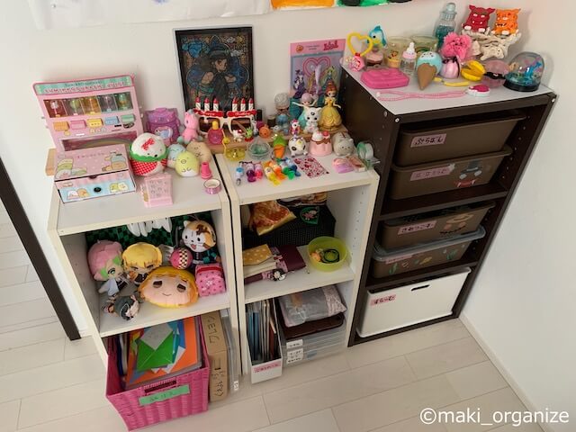 サイゾーウーマン暮らし住まいダイソーのアレを切るだけ、200円で完成 暮らし [連載]30代女子の「煩悩部屋」ビフォーアフター ダイソーのアレを切るだけ、200円で完成! フィギュアや小さなおもちゃの「大量ディスプレイ収納」でスッキリ解決 2021/07/26 19:30 伊藤まき(収納ライター) 「汚部屋」ビフォーアフター 連載企画「30代女子の「煩悩部屋」ビフォー・アフター」の新シーズンが始まりました。今回は、汚部屋あらため「汚家(おうち)」をまるごと片付けます! クライアントは板橋区・3SLDKの一軒家に家族4人で暮らす兼業主婦のKさん(37歳)です。 相談「子どもの小さなおもちゃを片付けたい」板橋区・Kさん(37歳/会社員役職) 「汚家まるごと変身企画」13回目はおもちゃや小物を飾る収納法です。ついつい集めてしまいがちな小物ですが、箱の中にしまいこまずに「ディスプレイ」すると良い効果が望めます。予算も100均だけで済むので、夏休みの子どもの家遊びにもおすすめです。 今回、片付ける4種のアイテムはこちら。 [1]小さなおもちゃコレクション [2]キーホルダー [3]髪飾り(カチューシャ、ヘアピン) [4]フィギュア、人形 赤ちゃんの口に入るサイズの小物がいっぱい(C)サイゾーウーマン まずは、Kさんのお悩みをヒアリング。娘さんが大切にしている「宝物」が、窓際にずら~り。小さなおもちゃは、まだ小さな赤ちゃんに危険だからと、1階におもちゃ部屋を用意したものの、リビングで遊びたいと持ち込んでくるそう。 でも、もう大丈夫! 前回片付けた3階の「子ども部屋」に、宝物を飾る「ディスプレイ収納」を用意します。まずは、ステップ1~5の手順に沿って、片付けていきましょう! [ステップ.1]家中の「おもちゃ」をグループ別に集める! 完成ではありません。おもちゃを集めて、仮置中です(C)サイゾーウーマン Kさん宅にあったカラーボックスに、娘さんのおもちゃをグループ別に仮置きします。家中まるごと片付けていると小物がわんさか出てくるため、コチラで一時保管というわけです。その間、カラーボックス収納に対する娘さんの反応を見てもらいました。 結果は、大喜び! 自分専用のエリアがうれしいのか、リビングに持ち込むこともなくなったとか。ここから大切なモノだけに絞って「宝物のパワー」を強くしたいと思います。 次のページ [ステップ.2]子どもが自分で「断捨離」! 1234次のページ 関連記事 無印良品1位「キャスターをつけられるフタ」そっくりで絶対買い! ダイソーの激アツ「ハーフボックス」を比較レビュー【ニトリ】1,212円のカラボ、買って損なし「絶対オススメ」! 整理収納アドバイザーが太鼓判、あらゆる悩みを解決!!コストコ「3つの掃除グッズ」が、キッチンで大活躍! ゴキブリの糞やカビにまみれた“汚台所”が劇的ピカピカに整理収納のプロが「100均グッズ」で一発手直し! 使いにくい「洗面台下」収納、解決ビフォーアフター実例プロがダイソーで買う収納グッズ1位「布製ケース」、キャンドゥからも出た! 全種が便利すぎる7つの理由