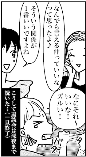 サイゾーウーマンカルチャーマンガ婚活中のアラフォー3人のとりあえずの結論! カルチャー まんが『オバサンと言われても結婚したい!』座談会 【アラフォー婚活ルポ】結婚相談所でもアプリでもない? アラフォー3人の「自分に合った出会い方」 2021/09/29 13:30 白戸ミフル(マンガ家) オバサンと言われても結婚したい! 2年もアプリでやりとりしてる男性 ――婚活座談会はこれで終了! 次回10月3日から【婚活ルポ】本編が再開します! 前のページ12 白戸ミフル(マンガ家) 神奈川県出身。漫画家・ライター。タレント活動の後、マスコミ系の職業を渡り歩き、現在は化粧品メーカーに勤務。合コン歴20年以上、累計回数2500回以上。女性向けwebメディアほか、男性向けメディア、旅系メディア等でライターとして幅広く執筆。著書『合コン・アンド・ザ・シティ 恋活・婚活女子の合コンマニュアル』(ごきげんビジネス出版)、 『乳がんステージ4だった私が、それでも合コンに行きまくって救われた話』(キノブックス) 記事一覧 X:@takara0722 Instagram:@tamifull0722 【アラフォー闘病&婚活記】 最終更新:2021/09/29 13:30 コロナ禍で自然な出会いは難しいよね 関連記事 【アラフォー婚活ルポ】婚活アプリでたくさんの人に会ったアラフォー3人がたどり着いた結論【アラフォー婚活ルポ】たくさんお見合いはしたけど……結婚相談所をやめたワケ【アラフォー婚活ルポ】「婚活プロフェッショナル」な友達と街コンへ行った結果……【アラフォー女3人婚活トーク】「出会いが減った」のは幻想!? 「アプリがある限り、出会いはある」ただし……【アラフォー婚活ルポ】42歳カップル、「親の介護」問題に直面! 彼の母はアルツハイマーで…… その他の作品を読む 次の記事 本当にあった“スピ被害”体験談 >