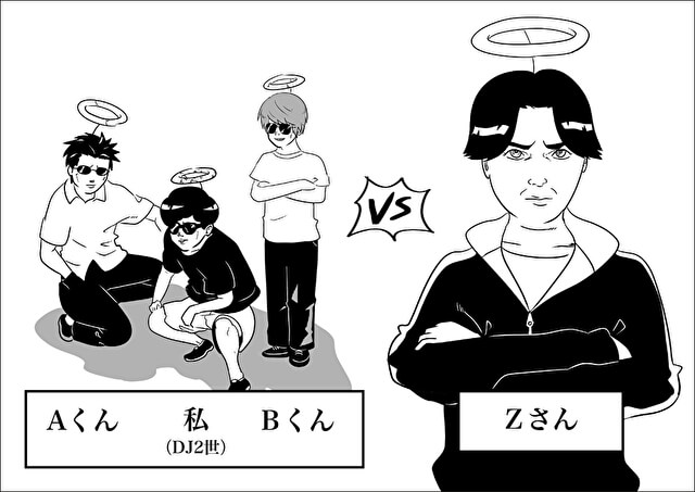 同い年仲良し3人組。みんな総じて信仰心がほぼない。Zさんは、サラサラヘアーな中年の信者(C)DJ2世 a.k.a 脱会くん