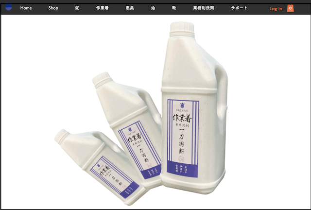 「一刀両断」とは、クリーニング師が開発した洗剤です。用途別に種類があり、今回使う「作業着用」のほかには「泥」「悪臭」「油」「靴」専用の洗剤があります。単体で使っても良し、組み合わせて使うとさらに効果が発揮される場合もあるようです。