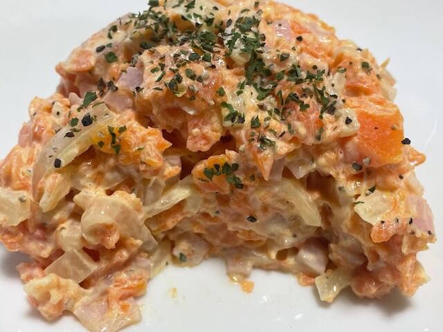 サイゾーウーマン暮らし食べ物バズレシピ【やみつき人参サラダ】作ってみた 暮らし 【あのツイッターレシピ、やってみました】 バズレシピ【やみつき人参サラダ】作ったら、完全に酒のアテ! ブラックペッパーとニンニクの「大人のハムサラダ」だった 2021/10/30 19:00 アウちゃん(ライター) ツイッターレシピ、やってみました ブラックペッパーとニンニクの大人のハムサラダといった感じ 長年、苦手すぎて避けてきた人参メインのレシピがここに。 正直に言いますと、今まで作ってきたレシピの中で一番「食べてみましょう!」という気になれなかったです。 断面はいい感じ(C)サイゾーウーマン 大丈夫、バズレシピさんの考案したレシピだもの、今まで信じて数々のレシピに挑戦させて頂いたんだもの。意を決して食べてみました。 大人のハムサラダ!(C)サイゾーウーマン ニンニクとブラックペッパーがかなり効いてるキャロットサラダだ。これは人参特有の味の主張が全くないぞ。人参はどこにいった? と言いたくなるほど存在感がない。むしろ「人参サラダ」という名前でいいのかとさえ思ってしまう。 これなら人参苦手な私でも、全然食べられるじゃないか。パンチの効いたブラックペッパーとニンニクの大人のハムサラダといった感じです。 もしもの時のための逃げ道があれば幸い。と思って念のために作っておいた、ポテサラも食べてみました。 保険で作っておいたポテサラ(C)サイゾーウーマン こちらのポテサラもリュウジさんのレシピ通りに「人参」を「じゃがいも」に変えて作っただけなんですけど、いつも私が作るポテサラは生の玉ねぎを使っているのでピリッとしていますが、リュウジさんレシピは玉ねぎのパンチではなく、甘みに変わってる(レンチンしてるから?)。 人参サラダはにんじんの存在感はあまり感じられないが、酒のあてにぴったりの、パンチが効いたハムサラダといった感じでした! 【総評】 もう一度作りたい度:★★★☆☆ ズボラ主婦でも再現可能度:★☆☆☆☆(レンチンで人参が柔らかくならなかったのでそれだけで難易度が上がった気がする) 子どもウケまたは夫ウケ:★★☆☆☆(子供には向いてないニンニクとブラックペッパー効きすぎていた気がする) 前のページ123 アウちゃん(ライター) 現在4歳と1歳を育児中の家事&料理がまったくできない主婦。好きな食べ物は激辛料理。しかし料理は夫担当。関西出身、福岡在住のライターブロガー。家事に関しては【見なかった事にしよう】が合言葉。 最終更新:2021/10/30 19:00 はい、こちら作ります 関連記事 『家事ヤロウ!!!』【悪魔のねぎだく油そうめん】作ったら、年中食べたいおいしさ! 卵黄&ごま油のトロトロで“濃厚そうめん”の完成『家事ヤロウ!!!』【豚バラのカリカリ下敷き】、レシピ史上最高ランクだ! ネギとニンニクが素晴らしくマッチングミスタードーナツ【ポン・デ・あべかわ】【ポン・デ・磯辺焼き】食べてみた!! 「普通のポン・デ・リング」をはるかに超える、マジでハマる味バズレシピ【チーズメルトオニオンスープ】、玉ネギ嫌いがリピート食い! レンチンだけで完成する“禁断のスープ”だった!『家事ヤロウ!!!』【アスパラと明太子のチーズ焼き】、カリカリ食感のチーズに胃袋つかまれた! “酒のアテ”最強レシピに決定だ! 次の記事 パスタ保存容器をプレゼント >