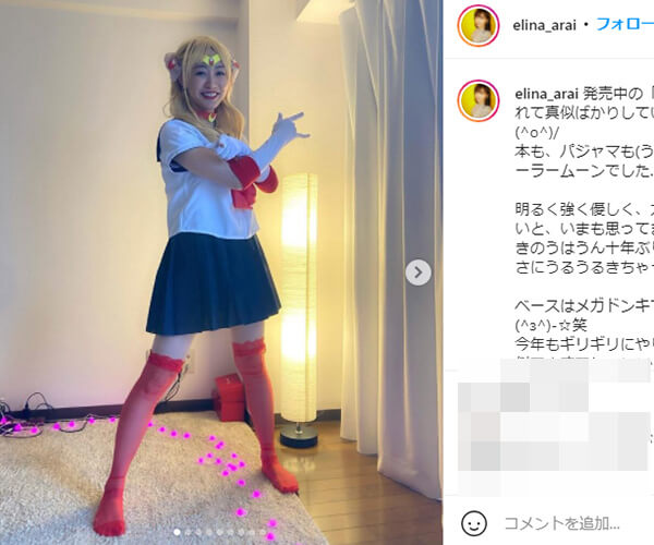 サイゾーウーマン芸能有名人のハロウィン仮装14連発! 芸能 フォロワーの反応は? 有名人のハロウィン仮装14連発! HYDE&DAIGO『東リベ』、清野菜名『イカゲーム』、久慈暁子アナは…… 2021/11/03 15:00 サイゾーウーマン編集部 アーティスト芸能ウラ情報女性タレント 今年のハロウィンも、DAIGOや本田圭佑、熊田曜子、久慈暁子アナウンサーなど、数多くの有名人がインスタグラムで仮装姿を公開。コスプレイヤーも顔負けのクオリティーの高い1枚から、思わずほっこりするハロウィンパーティでの一コマまで、それぞれ個性豊かな仮装を披露している。そんな中から、バラエティに富んだ14カットを一挙紹介する。 DAIGOインスタグラムより■HYDE、DAIGO 人気コミック『東京卍リベンジャーズ』(講談社)の“マイキー”こと東京卍會総長・佐野万次郎に扮したHYDEと、“ドラケン”こと副総長・龍宮寺堅に扮したDAIGOのスペシャルなショット。2人は10月30、31日の2日間にわたって開催されたコンサート『20th Orchestra Concert HYDE 黑ミサ 2021 Halloween』で共演。このコスプレは1日目に披露されたもので、あまりの完成度の高さからネット上では『東リベ』ファンからも称賛の声が上がっている。 久慈暁子インスタグラムより■久慈暁子 フジテレビの“クジパン”こと久慈暁子アナは、『めざまし8』公式YouTubeの撮影で赤ずきんちゃんとキョンシーの仮装に挑戦。コメント欄には「血が滴り落ちているにもかかわらず、かわいすぎる」「噛まれてみたい」などの声が寄せられ、ファンを喜ばせた。 本田圭佑インスタグラムより■本田圭佑 サッカーのリトアニア1部リーグ・スドゥバに加入した本田圭佑の仮装は、漫画『ドラゴンボール』(集英社)の主人公・孫悟空。岩の上で座禅を組む姿や、かめはめ波を打つカットなどを公開し、ストーリーズには「悟空になるという長年の夢を叶えた35歳」とつづっていた。コメント欄には、ZOZO前社長の前澤友作氏による「先越された」と悔しそうな書き込みも。 熊田曜子インスタグラムより■熊田曜子 「Happy Halloween 逃走中のハンターに捕まった」と、ハンターに扮したパパ友たちに捕獲されたことを報告したのは、夫と泥沼離婚協議中の熊田曜子。3人の娘の子育てに奮闘する彼女だが、この日は「捕まるとお菓子がもらえるの 長女や次女は笑顔で逃げ回ってて 三女は最初は号泣」とつづり、にぎやかなハロウィンを過ごしたようだ。 清野菜名インスタグラムより■清野菜名 連続ドラマ『婚姻届に判を捺しただけですが』(TBS系)で主演中の清野菜名は、韓国ドラマ『イカゲーム』(Netflix)に登場する女性キャラクター・セビョクのコスプレを披露。緊迫感あふれる写真が「誰かに追われてる(笑)」「髪の振り乱し方が絶妙」と反響を呼んでいるようだ。 藤田ニコルインスタグラムより■みちょぱ、藤田ニコル、越智ゆらの 藤田ニコルのインスタに、かつて共にティーン向けファッション誌「Popteen」(角川春樹事務所)でモデルを務めた“みちょぱ”こと池田美優、越智ゆらのが登場。女児向けアニメ『ふたりはプリキュア』(テレビ朝日系)のキュアブラック(池田)、キュアホワイト(越智)、メップル(藤田)になりきった3人に、コメント欄では「初期のプリキュア見てたから懐かしい」「久しぶりにゆらちょぱるん見た! 3人ともかわいすぎ」などの声が寄せられている。 大塚愛インスタグラムより■大塚愛 コスプレ好きで知られるアーティストの大塚愛は、「今年は紅の豚より ポルコとジーナで遊んでます」と、ジブリ映画『紅の豚』(1992年)のヒロイン・ジーナの仮装を披露。ネット上では「光の当たり方も含めて完ぺき」「ポルコ役の人、誰?」といった声が見られる。 安藤美姫インスタグラムより■安藤美姫 プロフィギュアスケーターでタレントの安藤美姫は、「オリンピックシーズンという事で2010年のバンクーバーオリンピックで演技した クレオパトラ風」とつづり、絶世の美女・クレオパトラになりきった写真を投稿。ファンから「妖艶ですね」「美姫さま……美しい」などの書き込みが集まっていた。 新井恵理那インスタグラムより■新井恵理那 友人宅でハロウィンパーティを行ったというフリーアナウンサーの新井恵理那は、「理想の女性」だという漫画『美少女戦士セーラームーン』(講談社)のセーラームーンのコスプレを披露。ちなみに衣装の「ベースはメガドンキで買い出しして、あとは手作り」したとか。 山之内すずインスタグラムより■山之内すず 「ハッピーハロウィン 去年はサボりましたが6年目のカオナシです」とつづった山之内すずは、白塗りメイクでジブリ映画『千と千尋の神隠し』(2001年)のキャラクター・カオナシを再現。よく見ると黒い服の襟ぐり部分から顔を出しているようだが、お手軽な仮装にしては「クオリティーが高い」と話題になっていた。 Dream・Amiインスタグラムより■Dream・Aya、Ami、Shizuka 元E-girlsでDreamのAmiは、「久しぶりにハロウィンパーティーを開催!! ShizukaちゃんがAMILOG
