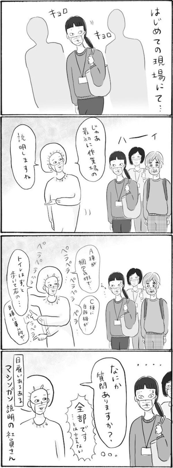 サイゾーウーマンカルチャーマンガ柿ノ種まきこ『アラサー独身女、今日も日雇いで生きてます』【漫画】ビギナーに厳しい日雇い現場 カルチャー 【連載】柿ノ種まきこ『アラサー独身女、今日も日雇いで生きてます』 【日雇いマンガ】178話『理解不能!? 難易度高めの作業オリエンテーション』 2021/11/18 13:00 柿ノ種まきこ(マンガ家) マンガ柿ノ種まき子日雇い ――「キツイ」「汚い」「男臭い」……なんとなく近寄りがたいイメージのある“日雇労働”。その、実態はどのようなものなのか? 日雇い労働を生業とするアラサー・柿ノ種まきこが、日雇いの日々と人間模様を紹介します。 第178話『理解不能!? 難易度高めの作業オリエンテーション』 ©柿ノ種まきこ 社員さんにとっては、日雇いさんが来ると毎日同じ説明をしなくてはならないので、ルーティーンになっていたりします。説明が早いのなんの……。早口言葉のようでした(笑) ――毎週、木曜日に最新話を更新。次回179話は11月25日(木)の更新予定です。 柿ノ種まきこ(マンガ家) 日雇いをしながらマンガを描くアラサー。過去には、「iVERY」にて婚活マンガ『女もつらいよ』を連載。現在はインスタグラムにて、マンガを不定期投稿。 Instagram:@kakinotane_makiko LINEスタンプ大好評発売中! 最終更新:2021/11/18 13:00 関連記事 【日雇いマンガ】『アラサー独身女、今日も日雇いで生きてます』【8~14話まとめ読み】【日雇いマンガ】『アラサー独身女、今日も日雇いで生きてます』【1~7話まとめ読み】【1~8話まとめ読み】統合失調症にかかりました~にゃんside~【エッセイ漫画】【9~15話まとめ読み】統合失調症にかかりました~にゃんside~【エッセイ漫画】 その他の作品を読むバックナンバーを読む 次の記事 ミッツ「マネキン20体と生活」 >