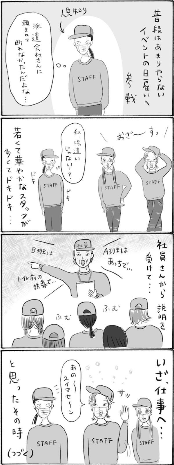 サイゾーウーマンカルチャーマンガ柿ノ種まきこ『アラサー独身女、今日も日雇いで生きてます』【漫画】人見知りに厳しすぎる現場 カルチャー 【連載】柿ノ種まきこ『アラサー独身女、今日も日雇いで生きてます』 【日雇いマンガ】179話『キビシー!! 人見知りには不向きな超絶キラキラ現場~前編~』 2021/11/25 13:00 柿ノ種まきこ(マンガ家) マンガ柿ノ種まき子日雇い ――「キツイ」「汚い」「男臭い」……なんとなく近寄りがたいイメージのある“日雇労働”。その、実態はどのようなものなのか? 日雇い労働を生業とするアラサー・柿ノ種まきこが、日雇いの日々と人間模様を紹介します。 第179話『キビシー!! 人見知りには不向きな超絶キラキラ現場~前編~』 ©柿ノ種まきこ イベントの日雇いは普段あまりやらないのですが、人手不足で派遣会社さんからお願いされ渋々行くことに。いざ作業が始まる……と思ったら若いキラキラ日雇い男子から謎の提案が…!(つづく) ――毎週、木曜日に最新話を更新。次回180話は12月2日(木)の更新予定です。 柿ノ種まきこ(マンガ家) 日雇いをしながらマンガを描くアラサー。過去には、「iVERY」にて婚活マンガ『女もつらいよ』を連載。現在はインスタグラムにて、マンガを不定期投稿。 Instagram:@kakinotane_makiko LINEスタンプ大好評発売中! 最終更新:2021/11/25 13:00 関連記事 【日雇いマンガ】『アラサー独身女、今日も日雇いで生きてます』【8~14話まとめ読み】【日雇いマンガ】『アラサー独身女、今日も日雇いで生きてます』【1~7話まとめ読み】【1~8話まとめ読み】統合失調症にかかりました~にゃんside~【エッセイ漫画】【9~15話まとめ読み】統合失調症にかかりました~にゃんside~【エッセイ漫画】 その他の作品を読むバックナンバーを読む 次の記事 “行ってはいけない”パワスポ11選 >