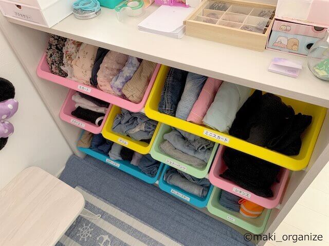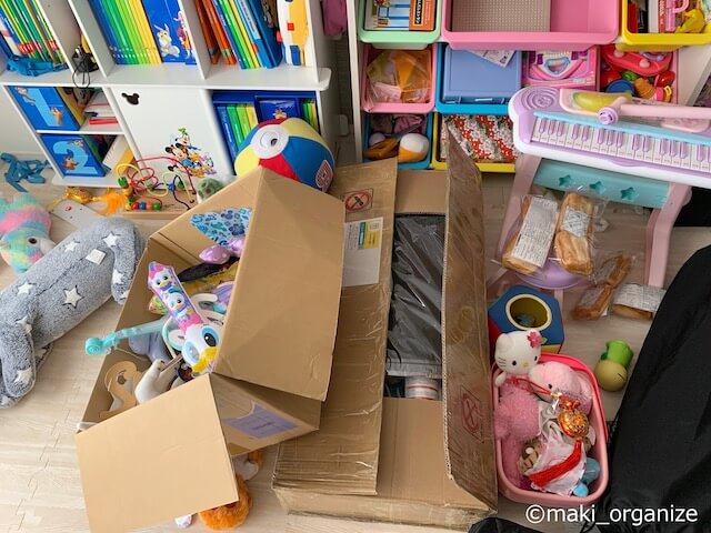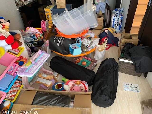サイゾーウーマン暮らし住まい100均とカラボだけで部屋激変! 暮らし [連載]30代女子の「煩悩部屋」ビフォーアフター 100均とカラボだけで大変身! 整理収納のプロが、「物置き部屋」をプレイルームにスッキリ片付け 2021/11/29 19:00 伊藤まき(収納ライター) 「汚部屋」ビフォーアフター 連載企画「30代女子の「煩悩部屋」ビフォー・アフター」の新シーズンが始まりました。今回は、汚部屋あらため「汚家(おうち)」をまるごと片付けます! クライアントは板橋区・3SLDKの一軒家に家族4人で暮らす兼業主婦のKさん(37歳)です。 お悩み:「使わない部屋が、押入れ状態」板橋区・Kさん(37歳/会社員役職) 西側の床にはリンゴやパンの箱買いがどっさり いよいよ、最後の汚部屋になりました。 汚家まるごと変身企画“29回目”は、1階の物置部屋を子ども用のプレイルームに変えていきます。「数年後は、下の子の部屋にしたいと考えています。今は、上の子用のプレイルームです。というか、荷物置き場ですよね(苦笑)」とKさん。 Kさんによると、部屋の使い方に困って「物置き部屋」になってしまったとのこと。玄関に近いお部屋は、生活行動を元に「収納場所」を決めると便利になります。 この部屋は、写真上の西側(クローゼット)と、写真下の東側の2回に分けてお送りします。今回は、東側です! おもちゃとストック品を収納する場所がない 東側。後回しにした荷物の山 Kさんの希望する「プレイルーム」の内容はこちら。 【Kさんの希望する内容】 [1]子どもの友だちとママ友を招くける空間 [2]子どもが工作を作れるスペース [3]子どもがDVDや楽器を楽しめるように [4]下の子のおもちゃ(未来と処分用)の控え部屋 [5]新しく家具を用意したくない これらをかなえるために、積もり積もった荷物の一つひとつに「定位置」を用意していく必要があります。 小さいおもちゃしか入らないラック 上の子のおもちゃを、下の子にも使いたい思いから7年分のおもちゃを保管していました。上の子が小さなときに買った「おもちゃラック」では、収納力が足りません。小物しか入らないサイズなので、使い方を変えました。 [改善][After]「おもちゃラック」は、別階の子ども服の棚へ! 持ち家具の使い方を変更した例 「おもちゃラック」は、3階に用意した子ども部屋の「子ども服収納ラック」へ変更。小さな子どもには、たんすより簡単な出し入れが出来ます。自分で支度できるのはもちろん、戻すこともできます。 次のページ [問題点][before]テレビ台に収納がない 1234次のページ 関連記事 【ニトリ】1,212円のカラボ、買って損なし「絶対オススメ」! 整理収納アドバイザーが太鼓判、あらゆる悩みを解決!!最安880円【コーナン】の激安カラボは買い! ニトリ・アイリスオーヤマより「隙間収納」にピッタリ、5つの使用例ダイソーの名品が「じゃない使い方」で大活躍! カラボの“生活臭”を3秒で目隠し……どころか“高見え”!キャンドゥ「レザー調トレー」が正解! カラボ「引出し収納ケース」、無印良品と100均のアレはNG!ダイソー・セリアの「白ボックス」一択! 100均「スクエアボックス」でカラボ収納を極める