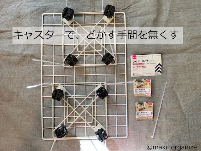 サイゾーウーマン暮らし住まいダイソー「キャスター」「蓋付き収納BOX」は買い 暮らし 伊藤まきの「お片付けSOS」相談! ダイソー「キャスター」「蓋付き収納BOX」で掃除がラクに! 2022年「汚れが溜まらない家」になるコツとアイテム 2021/12/27 19:30 伊藤まき(収納ライター) 「お片付け・お掃除SOS」伊藤まき いよいよ、2021年も残り5日! ここもあそこも、まだ掃除できていない場所がたくさんあるー! と焦ってる人もいるのでは? しかし、そもそも「汚れ」がなければ大掃除の必要もないはず。汚れがつかないようにすれば、大掃除から解放されるかもしれません。 そこで、整理収納アドバイザー1級の伊藤まきさんが、部屋に汚れが溜まらないちょっとしたコツを伝授! これらコツを仕込んでおけば、来年は大掃除と無縁かも? 昨年の年末に紹介した内容にプラスアルファして、最新版をお届けします! ****************** 整理収納アドバイザー1級で収納ライターの伊藤まきが、家の中の “片付かない”ちょっとした悩みを“簡単で安く”解決するコツを提案します! 年末に大掃除を迎えると、「もう汚さないぞ」「散らかさないぞ」と強く思いますよね。その決意、少しの「工夫」で叶います。頑固な汚れを落とした後こそ、「汚れを溜めない家」に変わるチャンス。その「工夫」を前編と後編の2回に分けて、お届けします。 今回は前回に引き続き、9つの「工夫」を紹介します。 [工夫11]ラグや布の使用をやめる(トイレ、キッチンなど) 敷きっぱなしのラグより、衛生面を保てる(C)maki_organize 写真上は、韓国の布団「イブル」。床暖房の上に敷く布団(オンドル)として使われるそうですが、軽くて洗いやすくて速乾性もあるマルチカバーです。日本では、重たくて洗いにくいラグやソファカバーの代わりに大人気。 ■布類に汚れを溜めるより「すぐ拭く」が今どき トイレの臭いは、布類に付着しやすい(C)maki_organize 便座用除菌シートのある今、トイレカバー3点セットを外す家が増えています。ほか、キッチンや玄関マットも同じ「すぐ拭く準備」が汚れないコツ。お風呂マットも、「重くかさばる」のでタオル素材や珪藻土が人気。掃除のたびに動かさなくて済み、洗濯をする回数や負担も減ります。 ただし、水滴をつい放置しがちな家は「床材が痛む」ので脱水力のある 布カバーが必要です。その家の暮らし方に合わせた、汚れ防止対策を! [工夫12]生活の動線に掃除グッズのスタンバイ(テーブルの上や棚の上、階段など) ながら作業も習慣になれば苦ではない(C)maki_organize 生活の動線にあわせて、「ながら掃除」をする道具を用意。階段を降りながら、ドライシートで埃を拭う。椅子に座りながら、除菌アルコールでテーブルを拭くといった感じです。続けるポイントは、「使い捨て」にすること。不要になった布や、ドライシートなどが◎。 壁掛けにしてから、使う回数が増えました(C)maki_organize 掃除機や床用ワイパーは、戸棚にしまいこんだら「やる気」をなくしがち。道具を「秒」で出す仕組みを用意すると、汚れが簡単なうちに動けます。ただし、重たい、使いにくい道具はNG。おしゃれな木製のモップや、羽毛のはたきを飾るだけのおうちも多いと感じます。 [工夫13]ダイソーのキャスターで、どかす手間をなくす! 耐荷重20kgと頑丈です(C)maki_organize 部屋の片隅に置いたダンボール箱も、キャスター付きなら掃除機をかける作業が苦になりません。ホームセンターなら「キャスター付き 荷台」が、1,000円前後で購入できます。店舗が近くにない方は、ダイソーの「角型花台 キャスター付き」(200円/税別、ライター調べ)がおすすめ。 ワイヤーネットと結束バンドで繋げるだけ(C)maki_organize ダイソーだけで制作費500円(税別)です。女性ひとりでも、工具不要で作れます。ワイヤーネットを2枚重ねれば、強度アップも可能。ゴミ箱やベッド下収納などにも◎。 ダイソーでは「幻のアイテム」です!(C)maki_organize 床に直置きした収納ケースに、キャスターを付けるだけ。ダイソーの「ラクラク ピタッ!とキャスター」は、小さいのに耐荷重8kgの優れもの。押入れやベッド下に直置きした、収納ケースにおすすめです。ただし、あまりの人気商品でほぼ入荷待ち。100均なら、コチラもおすすめ。 次のページ [工夫14]家中の「収納」と「家具」を一人で動かせるほど軽くする 1234次のページ 関連記事 プラダン、マステ、ラップでOK! 年末にプロが伝授「汚れが溜まらない家」になる9つの技5年分のホコリが積もった「カーテン」、カビの根が生えた「窓枠サッシ」……汚部屋をプロが大掃除してみた!ウタマロクリーナーで実例ビフォー・アフター! 5年放置した壁の「手アカ・黒ずみ・クレヨン・油」が激落ち! プロに学んだ大人気「ウタマロクリーナー」の5つの使い方! オキシクリーンも重曹もいらない大掃除テクニックを伝授キャンドゥ・ダイソー・IKEAの“買い”アイテム6選! 収納のプロがオススメ「洗濯ネット」活用術