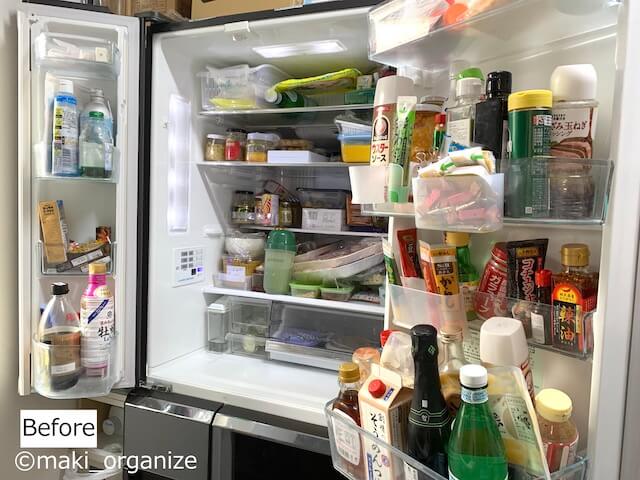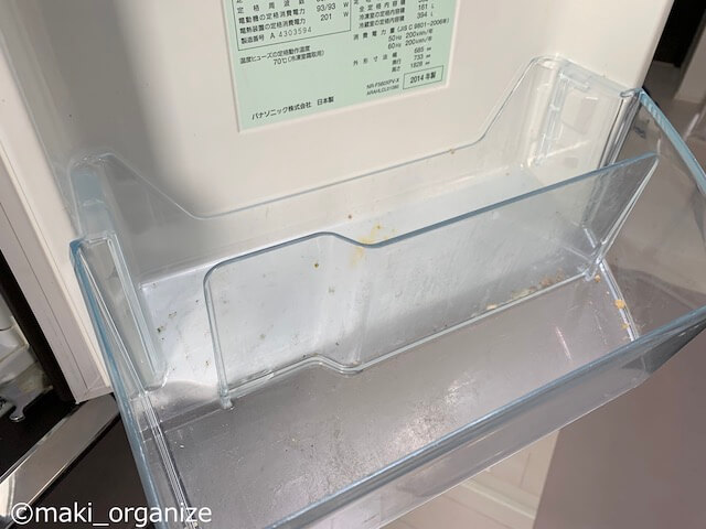 サイゾーウーマン暮らし住まい冷蔵庫の「掃除と収納」、プロの手直し 暮らし [連載]30代女子の「煩悩部屋」ビフォーアフター 「冷蔵庫」収納は100均のコレでスッキリ! プロの手直しビフォーアフター6連発 2021/12/13 19:30 伊藤まき(収納ライター) 「汚部屋」ビフォーアフター 連載企画「30代女子の「煩悩部屋」ビフォー・アフター」。今回のクライアントは板橋区・3SLDKの一軒家に家族4人で暮らす兼業主婦のKさん(37歳)です。 お悩み:「冷蔵庫がパンパンで入らない」板橋区・Kさん(37歳/会社員役職) 入っている内容物が誰にもわからない(C)maki_organize 汚家まるごと変身企画“32回目”は、キッチンの「冷蔵庫」です。クリスマス、大みそか、お正月と楽しいイベントが増える年末年始に向けて「食材のまとめ買い」が増えます。しかし、冷蔵庫がパンパンで「クリスマスケーキが入る余裕がない!」とお悩みではありませんか? 今回は、年末年始前に頑張りたい「冷蔵庫の掃除と収納」です。冷蔵庫(上段)と冷凍庫・野菜室(下段)の2回に分けて紹介します。 [ステップ1]冷蔵庫の中身を全部だして、外せるパーツを洗う 冷蔵が臭う原因にも……(C)maki_organize 冷蔵庫内の外せるパーツはすべて、食器用洗剤で洗い流します。特に、糖分の入った調味料の液漏れは頑固な汚れになるので、お湯で溶かしながら。長く放置すると、接着剤のようになってパーツを外せなくなる場合もあります。 [ステップ2]ゾーン別に出して「食材の見直し」 日本の食卓は、調味料の種類が多い(C)maki_organize 写真上は、冷蔵庫のドアポケットに入っていた食材です。賞味期限切れをはじめ、口に合わなかった調味料を処分します。すべて「食品ロス」になるので、次につなげないように「理由」を探りながら進めました。 [ステップ3]アルコールやオキシクリーンで除菌掃除 溝の汚れは、爪楊枝でしっかり除去(C)maki_organize チルド室のケースも、しっかり洗います。パーツを外すと、忘れていた食材や食品カスが出てきました。オキシクリーンを含ませたホットタオルで、室内もきれいに拭き上げました。 [ステップ4]室内はアルコール除菌をかけてすっきりと! ドアゴムの溝も汚れがたっぷりです(C)maki_organize オキシクリーンがないときは、ウタマロクリーナーとホットタオルを使います。冷蔵庫のドアパッキン(ゴムの部分)は、カビが出やすいのでアルコール除菌を付けて拭き上げました。 こんなふうに「食材の見直し」と「清掃」を繰り返しながら、食材を元に戻します。 [100均]冷蔵庫収納に用意するのは「イノマタ化学」一択 プラスチックの嫌な匂いも感じられません(C)maki_organize 100均(ダイソー、セリア、ワッツ、キャンドゥ)には、冷蔵庫の収納グッズがいっぱいです。最近も、ダイソーで新作が出ていましたが……筆者が選ぶのは、こちらの「イノマタ化学」の商品一択です。 [1]キレイストッカー ワイド(W12.7×D30.2×D7cm) [2]キレイストッカー スリム(W8.7×D30.2×H7cm) [3]キレイストッカー スモール(W7.2×D17.2×H9.5cm) [4]冷蔵庫スリムストッカー(W10.1×D31×D7.8cm) 4種類とも「イノマタ化学株式会社」の商品で国産品。ほとんどの100均で扱っているので、簡単に揃えられます。しかも、4種類すべて、冷蔵庫の“内寸を測らず”に持ち込んでも使えるんです。それぞれ最適な使い方があるので、次ページからこれを使って収納していきます! 次のページ [1.Before]冷蔵庫・左扉のドアポケット 123456次のページ 関連記事 クローゼット収納で「ダイソー」「イケア」が活躍! 汚部屋スッキリのコツをプロが解説、劇的ビフォーアフターキッチン「コンロ下&シンク下」収納、ビフォーアフター8連発! 100均アイテムだけでプロがスッキリ手直し食器棚で「やってはいけないNG収納」5連発! 使いにくくて、散らかりやすい……プロが片付けした結果、こうなった100均「透明ケース」が大活躍! 「100%散らかる」リビング、整理収納のプロがお片付け48時間で汚部屋スッキリ! 劇的ビフォーアフターで解説、「片付く家になる10ポイント」