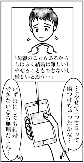 サイゾーウーマンカルチャーマンガ「夜の相性」って、結婚において大事? カルチャー まんが『オバサンと言われても結婚したい!』まとめ 【アラフォー婚活ルポ】42歳で結婚前提の彼と破局! 「夜の相性」って、結婚において大事? ほか人気エピソード 2022/01/05 13:30 白戸ミフル(マンガ家) オバサンと言われても結婚したい! ――合コン歴20年以上、累計回数2,500回以上、30代なかばに乳がんで闘病するも、現在は絶賛婚活中のライター・漫画家の白戸ミフルが「アラフォー婚活」の実体験をほぼリアルタイムでお届けします! アラフォー中の結婚は成就するのか……!? 今回は、2021年に公開したマンガから人気エピソードを振り返っていきます♪ 第76話 「42歳、結婚前提の彼と破局! また婚活再開しなきゃ……」 42歳同士で結婚を見据えた交際を始めた私たち。しかし、互いに多忙な日々を過ごし、1カ月も会わない生活が続いていた。話し合いをして、今後はしっかり連絡を取り合って、関係を深めていこう、となったけど、心はモヤモヤ……。私、彼のこと好きなのか? ただ結婚できそうな相手だから付き合ってるだけ? ▼続きはこちら▼ 【アラフォー婚活ルポ】3日後は43歳の誕生日! しかも祝日、予定なし!――合コン歴20年以上、累計回数2,500回以上、30代なかばに乳がんで闘病するも、現在は絶賛婚活中のライター・漫画家の白戸ミフルが「アラフォー婚活」の実体験をほぼリアルタ...サイゾーウーマン2021.10.27 次のページ 第80話 「結婚するうえで『夜の相性』って、そんな大事?」 123次のページ 関連記事 【アラフォー婚活ルポ】「いっそ旦那が死んでくれたら」友人の重すぎる結婚生活に絶句【アラフォー婚活ルポ】ナンパで出会った男と電撃入籍した友人から「別居した」報告!【アラフォー婚活ルポ】お母さん74歳か……「結婚結婚」とうるさく言わなくなった【アラフォー婚活ルポ】23歳男子とうっかり泥酔した結果……お泊まりコース!?【アラフォー婚活ルポ】「うちに来ませんか?」23歳男子から終電前のお誘い! 43歳、どうする? その他の作品を読む