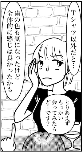 43歳、アプリや結婚相談所は続けているけど婚活は停滞中。最近はマッチングアプリで出会った30歳の外資系男子と飲みに行ったけど、バレンシアガのデカいロゴTシャツがどうしても気になる。後日、婚活友達にも話したところ、「とりあえずもっかい会ってみたら?」というアドバイスが。そうだな、もうちょっと考えてみようかな?