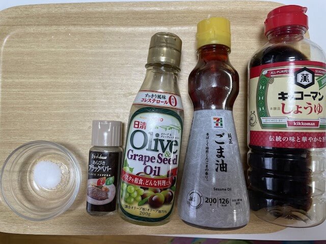 調味料はこちら。玉ねぎを炒めるときに塩を使うことによって、玉ねぎが甘くなるんだそうです。