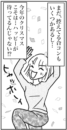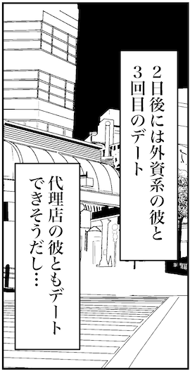 43歳、アプリや結婚相談所を使いながら婚活中。今のところは、元同僚で同じく婚活中のミサが開いてくれた合コンで知り合った男子と、アプリで知り合った30歳の外資系男子といい感じだけど、向こうから連絡はナシ……。自分から誘ってみたら即レスが! 早速次の予定が決まった。