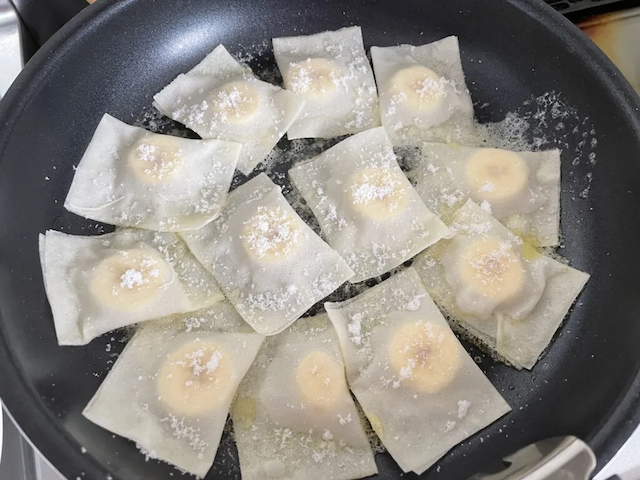 サイゾーウーマン暮らし食べ物山本ゆりさん【パリパリバナナ】、子どもウケもバツグンの満点レシピ! ガリガリザクザク食感がクセになる! 暮らし 【あのツイッターレシピ、やってみました】 山本ゆりさん【パリパリバナナ】、子どもウケもバツグンの満点レシピ! ガリガリザクザク食感がクセになる! 2022/04/02 19:00 アウちゃん(ライター) ツイッターレシピ、やってみました 山本ゆりさん【パリパリバナナ】、砂糖を振ってこんがり 作っていきます。 1)春巻きの皮は1枚を6~8等分に切る(バナナが太ければ6等分)。バナナは7ミリくらいの輪切りにする。 バナナは7mmくらいにカットして、春巻きの皮は6等分にしました。バナナも春巻きの皮も12個できました。 下準備できた(C)サイゾーウーマン 2)春巻きの皮にバナナをのせてパタンとたたんで周囲を指に水をつけて濡らしてギュッとおさえて留める。 ★かなりギリギリサイズなので一部とまらなくても大丈夫です! サイズ感が結構ギリギリになると書かれていましたが、今回はちょっと余裕を持って包めました。バナナが小さかったのでしょう。 余裕あります(C)サイゾーウーマン 12個、作り終えました。 12個完成(C)サイゾーウーマン 3)フライパンにバターを溶かして2を並べ、砂糖をパラパラふってこんがりしたら裏返す。上からまた砂糖をふってこんがりしたらもう一回裏返し、両面こんがりして砂糖が溶けたら完成! 砂糖は大量に振りかけたほうがカリカリのパリパリになるのでは……? と思い、砂糖を多めに使いました。 砂糖をたっぷり!(C)サイゾーウーマン 次のページ 山本ゆりさん【パリパリバナナ】、ザラメ風のガリガリ食感に春巻きの皮もパリパリ! 前のページ123次のページ 関連記事 『家事ヤロウ!!!』和田明日香さん【納豆かき揚げ】、これはリピートあり!! 香ばしさが増し増しのおなかいっぱい食べたいレシピ!『家事ヤロウ!!!』【キャベツ焼き】、こんな罪深い食べ方ある!? 何枚でも何度でも食べたくなる震えるレシピ!『家事ヤロウ!!!』坂本昌行の【鶏手羽の海水焼き】作ったら、皮パリパリの中はジューシー! 絶妙な塩加減だった「死ぬまでにもう一度食べたいパスタ」認定! 山本ゆりさん【めっちゃオススメのスパゲティ】、最高においしいぞ!『家事ヤロウ!!!』レシピランキング! リピートして作りたい料理ベスト5【2022年2月最新版】