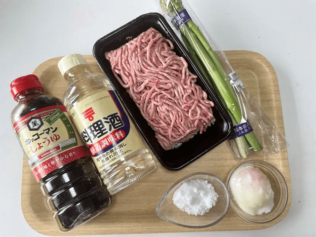 サイゾーウーマン暮らし食べ物【アスパラのそぼろ丼】絶対またリピする味 暮らし 【あのツイッターレシピ、やってみました】 『相葉マナブ』【アスパラのそぼろ丼】作ったら、また絶対リピートする! 脳内がこの味でいっぱいになる最強のやみつき度 2022/05/25 19:00 アウちゃん(ライター) ツイッターレシピ、やってみました 料理がまったくできない主婦の私。料理は夫担当になっていますが、子どもが大きくなるにつれ、私も作らなアカンときに見舞われるように。まずはSNSで人気の簡単レシピから料理にチャレンジ! 今日のレシピ:相葉マナブ【アスパラのそぼろ丼】 この投稿をInstagramで見る 相葉マナブ【テレビ朝日公式】(@aibamanabu_5tva)がシェアした投稿 最近、テレビ朝日系の番組『相葉マナブ』の料理を見ていると、作ってみたい欲がウズウズ湧いてくる。有名産地の食材を使っているとはいえ、近所のスーパーで買ってきても結構、簡単そうにできるレシピばかりなので、料理苦手主婦の私もちょくちょく挑戦しています。 先日はアスパラガスを使ったレシピをたくさん番組で紹介していましたが、その中でも「一度は食べてみたいかも!」とテレビ画面から食欲をそそった「アスパラのそぼろ丼」に挑戦してみました。 材料(2人分) 分量 アスパラガス 中5本 豚ひき肉 150g 酒 50mL しょう油 大さじ1 砂糖 大さじ1 サラダ油 大さじ1/2 ごはん 2膳 半熟卵 2個 (レシピは『相葉マナブ』公式アカウントより) 実際に作ってみましょう! 材料を用意しました。画面には写っていませんが、サラダ油と白米も用意しています。半熟卵は失敗する確率が非常に高いので、できているものを買ってきました。 材料(C)サイゾーウーマン 作り方はこちら。 (下処理)アスパラガスは根本の固い部分を切り落とし、下3分の1の皮をピーラーでむく。 (1)アスパラガスを1cm幅の小口切りにする。 食べた後にわかったのですが、この下処理はこの丼を最大限においしく食べるために必須工程です! 下処理、大切!(C)サイゾーウーマン 次のページ 【アスパラのそぼろ丼】、豚肉の甘い香りがしてくる 123次のページ 関連記事 『家事ヤロウ!!!』【いももち】作ったら、うまさジュワー! 子ども2人がガッツリ食べるおやつ感覚でイケるレシピだった『相葉マナブ』【新玉ねぎのマヨネーズレンジ蒸し】作ってみたら、食べれば食べるほど甘い! レンチンだけでうまさ100%レシピだった『家事ヤロウ!!!』和田明日香【角煮風味玉子】 食べたら、ご飯3杯いける!! 夫も認めるうまさ黄金比率のタレ『家事ヤロウ!!!』【カリカリバターあんぱん】作ったら、表面カリカリのまんじゅう!? 薄皮つぶあんぱんの魅力を考えた『家事ヤロウ!!!』和田明日香さん【納豆かき揚げ】、これはリピートあり!! 香ばしさが増し増しのおなかいっぱい食べたいレシピ!