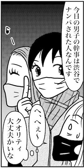 サイゾーウーマンカルチャーマンガ合コンの別れ際、友人の宣言にあぜん! カルチャー まんが『オバサンと言われても結婚したい!』135話 【アラフォー婚活ルポ】合コンの別れ際、友人の宣言にあぜん! 2022/06/01 13:30 白戸ミフル(マンガ家) オバサンと言われても結婚したい! ――合コン歴20年以上、累計回数2,500回以上、30代なかばに乳がんで闘病するも、現在は絶賛婚活中のライター・漫画家の白戸ミフルが「アラフォー婚活」の実体験をほぼリアルタイムでお届けします! アラフォー中の結婚は成就するのか……!? 【前回まで】 アラフォー婚活反省会。バツイチで婚活中の順子さんは、現在彼氏もデートする予定の人もいないそうで、来週に迫ったクリスマスに向けてアプリを頑張るとのこと。一方のミサと私は、クリスマス直前に合コンへ繰り出すことに。 135話『合コンの別れ際、友人の宣言にあぜん!』 次のページ 終電が近くなり…… 123次のページ 関連記事 「夫にはセックスもさせません」、中年婚活の現実を「婦人公論」が特集【アラフォー婚活ルポ】体の相性も大事だよね!? 騎乗位でヤッてみたら……痛い痛い痛い痛い!【アラフォー婚活ルポ】残念だけど、人生にタラレバはない! そして若くもない!【アラフォー婚活ルポ】アプリで出会ったバツイチ彼、運命の人だと思ってた……けど【アラフォー婚活ルポ】めっちゃタイプな男性とデート! グイグイ押しまくって引かれてる……? その他の作品を読む