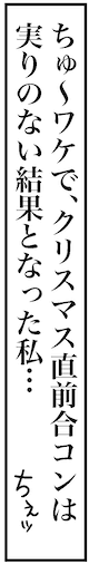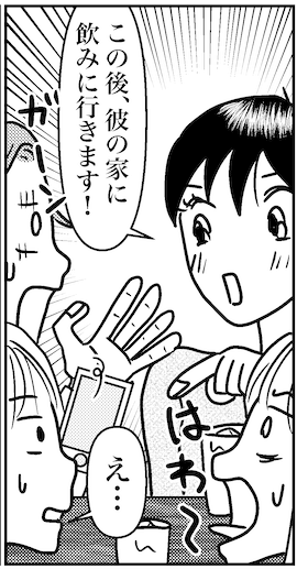 アラフォー婚活仲間のミサと私は、クリスマス直前に合コンへ繰り出した。渋谷でミサをナンパしてきた男性が幹事の合コンで、会の終盤、ミサが突然「この後、彼の家に飲み行きます」と宣言。果敢な攻めの姿勢に驚くやらあぜんとするやら……。