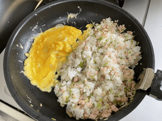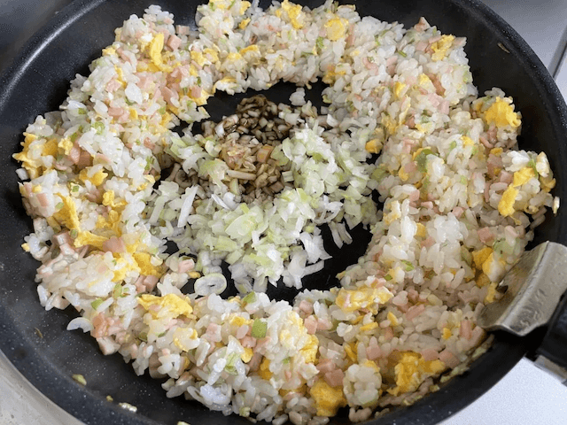 サイゾーウーマン暮らし食べ物【初心者でも激うま!チャーハン】子どもに◎ 暮らし 【あのツイッターレシピ、やってみました】 『家事ヤロウ!!!』和田明日香【初心者でも激うま!チャーハン】、7歳の子どもがオカワリ! 長ネギが甘さを発揮したレシピ 2022/06/25 19:00 アウちゃん(ライター) ツイッターレシピ、やってみました 【初心者でも激うま!チャーハン】卵はスクランブル状にする (3)フライパンにサラダ油を大さじ2入れ、長ネギの青い部分を中火でカリッとするまで炒める ★油と相性がいい青い部分を揚げネギにする 油断するとすぐに焦げそうな雰囲気なので注意が必要です。 青いねぎだけ先に炒める(C)サイゾーウーマン (4)ハムを加えて炒める ★初心者は味付けを頑張るより味付きの具(しらす、チャーシューなど)を使うと失敗しにくい! (5)温かいご飯180gを加えてパラッと炒める ★ご飯を切るように炒めるのが、お米をつぶさずパラパラにするポイント 味付きの具を使うと失敗しにくい、とありますが、いずれも使わずに勝負です。それにしても、米をパラっと炒める……?どうやって? と疑問が多いまま進みます。 ハムと米も投入(C)サイゾーウーマン (6)ご飯をフライパンの端に寄せ、空いたスペースで卵をスクランブル状にしてご飯と混ぜる ★スクランブル状にすることで卵の存在感がUPします 卵を入れる(C)サイゾーウーマン (7)もう一度端に寄せ、白ネギとしょう油(小さじ2)を焦がすように炒める ★焦がしネギしょう油で香ばしく! 材料が増えるたびに端に寄せるのが非常に難しく感じた。 白いネギとしょうゆを最後に(C)サイゾーウーマン 次のページ 【初心者でも激うま!チャーハン】パラッ、フワッ、シャキッ! 前のページ123次のページ 関連記事 『家事ヤロウ!!!』山本ゆりさん【6Pチーズいももち】、感動モノのうまさ! 表面サクッとおやつ感覚でイケる!バズレシピ【至高のチャーハン】、おいしさの天井を突き破った! 興奮収まらないめちゃうまレシピ『家事ヤロウ!!!』和田明日香さん【ひき肉そのまま煮込みハンバーグ】作ったら、肉汁ダイレクトの味わい! トマト缶とセロリの旨味も◎『家事ヤロウ!!!』【チェダーチーズせんべい】、チーズ好き大歓喜!! 某ハンバーガー店のアレが濃厚になったうまさロバート・馬場さん【シンプルで一番大好きな卵チャーハン】作ってみたら……目玉焼きに醤油味!? 子どもウケ抜群の感動レシピだった