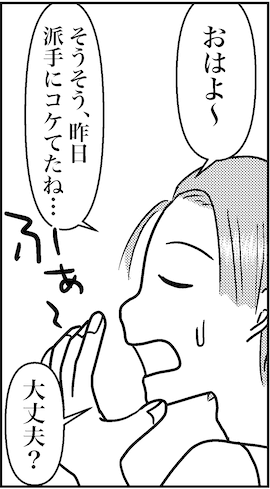 サイゾーウーマンカルチャーマンガヤッてはいないけど、やらかした? カルチャー まんが『オバサンと言われても結婚したい!』145話 【アラフォー婚活ルポ】ヤッてはいないけど、いろいろヤッちゃったような…… 2022/07/06 13:30 白戸ミフル(マンガ家) オバサンと言われても結婚したい! ――合コン歴20年以上、累計回数2,500回以上、30代なかばに乳がんで闘病するも、現在は絶賛婚活中のライター・漫画家の白戸ミフルが「アラフォー婚活」の実体験をほぼリアルタイムでお届けします! アラフォー中の結婚は成就するのか……!? 【前回まで】 アプリで知り合った男性(バツイチ)と今日は2度目のデート。2軒目に彼と行ったカラオケバーでは、横にカッコイイ男性が! 彼がトイレに行ったすきに声を掛けて、みんなで一緒に飲むことに。翌日、目を覚ましたら天井がウチじゃない……。 145話『ヤッてはいないけど、いろいろヤッちゃったような……』 次のページ めっちゃ記憶飛んでる 123次のページ 関連記事 【アラフォー婚活まとめ読み】婚活オンナ3人がぶっちゃける!! これって、理想が高くてぜい沢?【アラフォー婚活まとめ読み】婚活オンナ3人がぶっちゃけ総決算!! デート・交際、涙の失敗談【アラフォー婚活ルポ】クリスマス目前、マッチングアプリのDineとクロスミーをやってみた【アラフォー婚活ルポ】結婚相談所も再スタートしたけど、婚活してる暇がないよ【アラフォー婚活ルポ】アプリで結婚相手探し、痛恨の初歩的ミス! その他の作品を読む