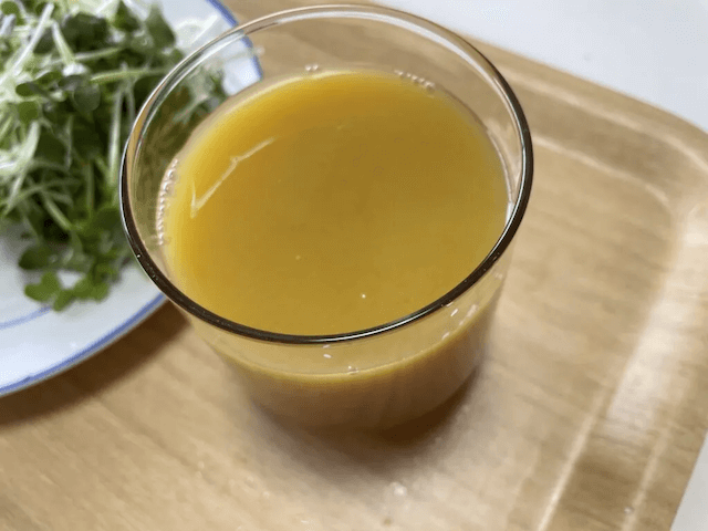 サイゾーウーマン暮らし食べ物【爽やかオレンジそうめん】とっても不思議な味 暮らし 【あのツイッターレシピ、やってみました】 『ヒルナンデス』【爽やかオレンジそうめん】作ったら、未知の世界に恐怖!? この割合を考えた人はすごい! 2022/07/06 19:00 アウちゃん(ライター) ツイッターレシピ、やってみました 料理がまったくできない主婦の私。料理は夫担当になっていますが、子どもが大きくなるにつれ、私も作らなアカンときに見舞われるように。まずはSNSで人気の簡単レシピから料理にチャレンジ! 今日のレシピ:【爽やかオレンジそうめん】『ヒルナンデス』 (C)サイゾーウーマン 6月21日放送の『ヒルナンデス』(日本テレビ系)で紹介されたレシピがネット上でにわかに話題になりました。タイトルを見てわかるように、そうめんつゆに100%のオレンジジュースを割って入れるんだそう。なぜ、これが話題になるのだろうか? と考えましたが、食べてみれば答えがわかるはず! 早速チャレンジしてみる事にしました。 材料 分量 100%オレンジジュース 360ml めんつゆ(3倍濃縮) 100ml サラダチキン(ほぐす) 80g かいわれ大根(根っこをカット) 1/2株 (レシピは『ヒルナンデス』より) 実際に作ってみましょう! めんつゆは4倍のものしか冷蔵庫になかったのですが、なんとなくこのレシピに使う麺つゆはレシピ通りにしたほうがいい気がしたので3倍麺つゆをスーパーで買ってきました。カイワレ、オレンジジュース、サラダチキン、こしょう、ソーメンで準備完了です。 材料(C)サイゾーウーマン サラダチキンは食べやすい大きさに切ってカイワレは根元を切り落とす。そして麺つゆと割る前のオレンジジュースです。 オレンジジュースもスタンバイ(C)サイゾーウーマン オレンジジュース3、麺つゆ1の割合で合わせます。ちょっと色が怪しくなりました。甘い麺つゆに酸っぱい100%オレンジジュース……。嫌な予感しかない。 間違って飲んだらヤバい(C)サイゾーウーマン 次のページ 【爽やかオレンジそうめん】この割合を考えた人はすごい 12次のページ 関連記事 『家事ヤロウ!!!』【ピーマンの煮びたし】、甘みが濃くてGOOD! ピーマン丸ごと種までイケる包丁不要レシピ『家事ヤロウ!!!』和田明日香【初心者でも激うま!チャーハン】、7歳の子どもがオカワリ! 長ネギが甘さを発揮したレシピバズレシピ【至高のチャーハン】、おいしさの天井を突き破った! 興奮収まらないめちゃうまレシピ『沸騰ワード10』伝説の家政婦・タサン志麻氏、おすすめレシピ8選!【2022年6月最新版】『家事ヤロウ!!!』【レンチンチャーシュー】、10分で完成する満点レシピ! 豚バラブロックを自信満々で買うべし