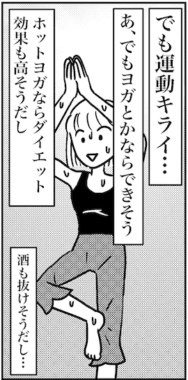 サイゾーウーマンカルチャーマンガ老い対策! ホットヨガならよさそう カルチャー まんが『オバサンと言われても結婚したい!』146話 【アラフォー婚活ルポ】老い対策! ホットヨガなら体力もつきそう 2022/07/10 13:30 白戸ミフル(マンガ家) オバサンと言われても結婚したい! ――合コン歴20年以上、累計回数2,500回以上、30代なかばに乳がんで闘病するも、現在は絶賛婚活中のライター・漫画家の白戸ミフルが「アラフォー婚活」の実体験をほぼリアルタイムでお届けします! アラフォー中の結婚は成就するのか……!? 【前回まで】 アプリで知り合った男性(バツイチ)と2度目のデートで、どうやらやらかしてしまったみたい。泥酔して派手に転び、そのまま彼の家で寝てたようだけど、記憶が……ない! 彼からはその後、連絡が途絶えてしまった。それに何日たっても膝のケガが治らない……これも老い? 146話『ホットヨガならダイエット効果も体力もつきそう』 次のページ 近所のホットヨガへ 123次のページ 関連記事 【アラフォー婚活まとめ読み】婚活オンナ3人がぶっちゃける!! これって、理想が高くてぜい沢?【アラフォー婚活まとめ読み】婚活オンナ3人がぶっちゃけ総決算!! デート・交際、涙の失敗談【アラフォー婚活ルポ】クリスマス目前、マッチングアプリのDineとクロスミーをやってみた【アラフォー婚活ルポ】結婚相談所も再スタートしたけど、婚活してる暇がないよ【アラフォー婚活ルポ】アプリで結婚相手探し、痛恨の初歩的ミス! その他の作品を読む