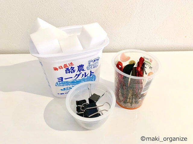 サイゾーウーマン暮らし住まい空き箱再利用の収納法12 暮らし 伊藤まきの「お片付けSOS」相談! 予算0円でも片付く! プロがやってる、靴箱・段ボールでできる「空き箱」収納法12テクニック 2022/09/19 19:00 伊藤まき(収納ライター) 「お片付け・お掃除SOS」伊藤まき [空き箱収納法:8]プラスチック製のふた付き容器(海苔、ガムなど) 透明のケースだから、何でも収納できる(C)maki_organize プラスチック製の容器に入った食品で、特におすすめなのが「味海苔」です。違うメーカーでも同じサイズが多く、集めやすい点も魅力です。また、徳用ガム、徳用お菓子、プロティン、サプリなどのケースも「蓋付き」で「湿気対策付き」なので粉末調味料入れや粉物ケースに最適というワケです。 [ポイント] その家の「定番メニュー」なら、同じサイズが揃えられます。収納ケースは、同じ型で揃えるほどスッキリします。 [空き箱収納法:9]円筒型の空き箱&空き缶 中のモノが半分見えていればOK(C)maki_organize ポテトチップスと日本茶の円筒型が使えます。ハンディモップケースやこれより1/2サイズの円筒なら、子どものペンスタンド、ヘアバンドスタンド掛け、リモコン入れなど使い道も広がります。カラー紙などをくるっと巻いて、お好みのデザインに。 [ポイント]簡単な工作で、無料の便利グッズ (C)maki_organize 底面に穴を開ければ、水切りネットケース入れに。ちなみに、工作の時間がある人は「ラップの芯」もおすすめ。ブレスレットや腕時計のスタンド、フィギュアコレクションの収納などアイデアが広がります。 [空き箱収納法:10]ふた付きガラス瓶 積み重ねもできるデザイン お気に入りの「インスタントコーヒー」がある人は是非! 優秀な密閉式ガラス瓶を同じサイズでそろえることができます。しかも、割れにくいし剥がせるシールだから処理も簡単! コーヒーの消臭効果まで付いています。もはや、100均の調味料入れより完璧です。 [ポイント]ジャム瓶や調味料瓶も再利用 100均店が主流になる以前は、ふた付きのジャム瓶や調味料瓶が収納グッズでした。粉末調味料、ネジ、ボタン、シール入れなどに使います。ともに「透明の容器」なので、家族みんなが理解できます。 [空き箱収納法:11]デザート容器 写真上は、スーパーのデザートケース(プラスチック)です。洋菓子店のガラス製を集めている方も多いと思います。デザート容器は、ちょっとした小物入れになります。収納は、空間の「高さいっぱい」まで利用した方が、収納力が上がるので平面に置くより凹型のケースに入れた方が◎です。 [空き箱収納法:12]ペットボトル 油が冷めたら水切りネットで油こしに 子どもの工作グッズ入れ、掃除道具入れ、ペットのお世話グッズなど「汚れやすいモノ」専用に、カットした「ペットボトル」が便利。ただし、切り口が危険なのでテープの縁取りを忘れずに。キッチンでは、お米入れ、油こし、料理のお裾分け用容器にも◎。 [その他]缶でできたボックス お土産のクッキー缶など「スチール製の箱もの」も昔ながらの収納グッズです。裁縫グッズや工具入れによく使ったものです。ただし、水回りは錆び付くのでNG。また、建具に傷がつくリスクもあるため、積極的には使いません。 [空き箱収納法:まとめ]ゴミ箱へ捨てる前に 空き箱収納法:ここで紹介したすべてを「あとで使おう」「何か使えそう」という気持ちで保管するとモノが増えるだけなので「使用後は、引き出し収納に使おう」と思っていただけたら嬉しいです。ゴミが出る前に、収納を見直す整理習慣につながるチャンス! 次回は、リボン、紙袋、洗濯ネットなど「家にあるモノ」編です。 前のページ123 伊藤まき(収納ライター) 収納ライター・兼・整理収納アドバイザー1級。クリンネスト2級。おがくず工場に生まれ、ホテル清掃員、国鉄系レストランの厨房、内装会社、デパートの搬入搬出など“家事の土台”を極めた生活を経て、出版社入社ののち独立、現在に至る。モノを手放すほど「幸運」が舞い込むジンクスを何度も体感! 貧乏神と決別した実体験をもって、整理収納の威力をお伝えします。 記事一覧 Instagram:@maki_organize 最終更新:2022/09/27 18:08 チップスター容器に第二の人生があったとは 関連記事 ダイソー「本当に使える」収納アイデア28選! プロがおすすめ最新アイテムまとめ【2022年9月最新版】ダイソー「Standard Products」のおすすめ! ギュウギュウのキッチンが収納力アップ狭い家のストレス解消! 収納の無駄スペースを減らす、ちょっとしたテク14プロが選ぶ100均「かもいフック」、イチオシはコレ! 10通りの使用法で収納力アップ収納のプロが買わない100均「靴収納グッズ」! 片付かない家によくあるNGアイテムは? 次の記事 「セックスレス」で始めた婚外恋愛 >