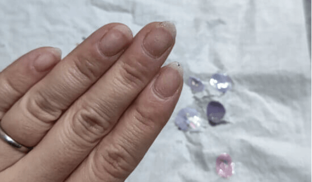 サイゾーウーマン暮らしトレンドネイリストが教えるネイルシールの上手なつけ方 暮らし 100均ジェル風ネイルシール、プロが使い方伝授 100均ネイルシールおすすめはダイソーよりセリア! ネイリストが比較レビュー、長持ちするやり方は? 2022/10/10 19:00 maity(元ネイリスト) トレンド 100均ネイルシール、剥がしやすさも違いが歴然! 髪の毛がシールに引っかかったので入浴後、シールをはがすことにしました。まずは先端がはがれている左手、ダイソーのシールから。根元からシールをはがそうとしましたが入浴後で水分をふくんでいるからかなかなかきれいにめくれません。 左手ダイソーのシールからはがすことに。(C)サイゾーウーマン シールが途中で切れてぽろぽろになり、爪表面にはシールの粘着が残りベタベタ状態になりました。 ダイソーシールは粘着が爪表面に残りべたべたした状態。(C)サイゾーウーマン 右手のセリアも剥がしてみます。こちらはきれいに爪の形のままシールをめくることができました。 右手のセリアネイルシールも根元からやさしくはがしてみます。(C)サイゾーウーマン きれいにはがれるのが楽しいのか、娘も手伝ってくれました。 セリアのネイルシールは爪の形のままきれいにはがすことができました。(C)サイゾーウーマン 爪の表面も粘着部分はほぼ残っていない状態です。 右手セリアのシールはきれいにすべてはがすことができ、爪表面にベタベタも残りませんでした。(C)サイゾーウーマン 一方、左手ダイソーを貼っていた方はベタベタやシールのラメが残った状態。 左手ダイソーを貼っていた方はベタベタやシールのラメが残った状態に。(C)サイゾーウーマン はがしたシールはティッシュの上にならべたところ一目瞭然。ダイソーのシールは跡形もなくぽろぽろ状態ですがセリアのシールはすべて爪の形のままはがすことができました。 シールを並べて比較すると差がでました(左)ダイソー、(右)セリア。(C)サイゾーウーマン シールのベタベタが残った左手はベースコートも塗っていたので、アセトン(除光液)で軽くふき取ることに。アセトンでふき取る際は、たっぷり目に液をコットンにしみこませることがポイントです。 アセトンの量が少ないと爪のベタベタにコットンがくっつきさらにひどい状態になります。アセトン(除光液)でふき取ればベースコートもシールのベタベタも取れてすっきりしました。 ダイソーのシールはアセトン(除光液)で拭きとることが必要です。(C)サイゾーウーマン お子さまと一緒に楽しんだり出先でネイルを簡単に楽しみたい場合はアセトンを使用せずきれいにはがせるセリアのシールをおすすめします。 次のページ 100均貼るだけネイルシールはセリアがおすすめ! 前のページ123456次のページ 関連記事 100均ジェルネイルはダイソーよりキャンドゥがおすすめ! ネイリストが使って比較、セルフの上手なやり方は?韓国発の人気ネイルシール「オホーラ」が50%オフ!? 先着20名セールに挑んだ結果……【100均ずぼらシュラン】ダイソー人気コスメ「UG エナメル リムーバーシート」で失敗したネイルもやり直し放題!?【100均ずぼらシュラン】ダイソー「爪美活ネイルオイル さっぱり」で保湿対策して爪美人に!?【100均ずぼらシュラン】ダイソー「ネイルやすり&みがき」を検証! どこまでピカピカになる?