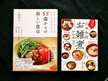 サイゾーウーマン暮らし「加齢対応食の本」と「お雑煮レシピ本」 暮らし 白央篤司の「食本書評」 50代、体の変化を自覚した上でどう食べていく? 魅力あふれる「加齢対応食の本」と日本全国の「お雑煮レシピ本」 2022/12/10 18:00 白央篤司(フードライター) 「食本書評」白央篤司 時短、カンタン、ヘルシー、がっつり……世のレシピ本もいろいろ。今注目したい食の本を、フードライター白央篤司が毎月1冊選んで、料理を実践しつつご紹介! 激推しの書(写真:サイゾーウーマン) 食本書評、今回は2冊をご紹介する。料理だけでなく、様々な世代やライフスタイルに即した食生活を提案する上田淳子氏の新刊と、お雑煮の深く豊かな世界に迫るルポタージュ&レシピブック。どちらも白央の下半期激推しの書である。 『55歳からの新しい食卓』上田淳子 『55歳からの新しい食卓』(学研プラス 1600円)2022年9月29日発行 こういう本を待っていた。 「55歳から」とあるが、40代の方にも強くおすすめしたい。人によって差はあろうが、中高年になってくると少なからず「若い頃は好きだったのに胃がもたれる」とか「硬いものが食べにくい」など、食と加齢に関して気になることがあると思う。老いを認めるのはシャクだけれど、無理すると体に悪いことこの上ない。胃腸や歯をムダに痛める原因にもなり、結局は体の劣化を早めることにも繋がる。 脂っこいものが苦手になってきた、噛みにくいものが増えた、ヘルシーなものは味気なくてさびしい、あるいは気力が落ちて料理が面倒くさくなった……などなど、中高年が抱えがちな食の悩みにどう対応していくか、というのが本書のコンセプトである。軸となるのは「なおかつおいしく、楽しく食べる」という熱い思い。「加齢対応食の本」なんて書いてしまうといかにも味気ないが、本書に出てくる料理はどれもパッと見からおいしそうで、作ってみたくなる魅力にあふれている。まずそこがいい。 著者の上田淳子さんはヨーロッパで3年ほど修行されてから料理研究家になられた人。自身も大の食いしん坊だが、50代に入って「気持ちは食べたいのに、体はそうはいかない」というジレンマを覚えた。おいしいものを諦めたくない、という信念のもと「変化を自覚した上でどう食べていく?」を研究する。 フランス料理における「エチュベ(蒸し煮)」は素材を柔らかくさっぱりと仕上げ、量もとれるおすすめの技法で、本書で何度も出てくる。鶏むね肉などをパサつかせない「塩糖水」を使ったレシピなど、初耳の人も多いだろう。「加齢に応じた食べやすさ追求テク」を覚えるというより、純粋に調理の幅が広がっていくワクワク感を得られるのもいい。 「以前よりも食べる量が減ったとはいえ、洋食などのこってり味のおかずもいまだに好き」、中華だって「まだまだおいしく食べたい!」といったことがテーマの章もある。このへんがいかにもアラフィフ向きで、現実的だ。あっさりも必要なんだけど、濃いものやガツンとくる味だってまだ恋しいんだよね。じゃあどう作るか、どう食べ切っていくかという視点に立った提案がリアルで、役立つアドバイスにあふれている。個人的には定番醤油味以外の煮魚レシピがありがたかった。「ぶりの梅煮」「さけの塩レモン煮」は我が家の定番になりつつある。 次のページ 『日本全国お雑煮レシピ』粕谷浩子 12次のページ 関連記事 ユニークな箸置きが楽しい! コレクターが集めた、愛らしい「小さな遊び心」の数々ひとり暮らしのムリしない料理のコツは、ほどよくラクに「そこそこおいしい」! 自分のための食事をどうする?原田マハ『やっぱり食べに行こう。』“食い意地”が信用できる旅のグルメコラム『最強おつまみ事典』『日本全国地元食図鑑』ほか、上半期のオススメ“食本”3冊『エシカルフード』で目からウロコ! 日本の食産業の問題点は、買い物ひとつで変わる?