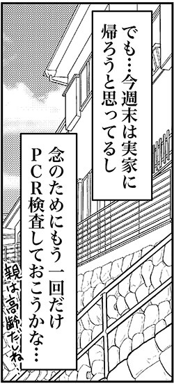 サイゾーウーマンカルチャーマンガアラフォー婚活、咳が止まらない! カルチャー まんが『オバサンと言われても結婚したい!』217話 【アラフォー婚活ルポ】検査の結果に硬直……デートをした彼に連絡しなきゃ! 2023/03/08 13:30 白戸ミフル(マンガ家) オバサンと言われても結婚したい! ――合コン歴20年以上、累計回数2,500回以上、30代なかばに乳がんで闘病するも、現在は絶賛婚活中のライター・漫画家の白戸ミフルが「アラフォー婚活」の実体験をほぼリアルタイムでお届けします! アラフォー中の結婚は成就するのか……!? 【前回まで】 20代男子にセフレにされかけた痛い経験をバネにして「婚活の鬼」になった私。マッチングアプリを中心に行動中! そして、33歳男性とのデート後、体調不良に。PCR検査を受け陰性だったものの、その後も咳が止まらず、再び検査をすると……。 217話『検査の結果に硬直……デートをした彼に連絡しなきゃ!』 次のページ 急いで帰宅 123次のページ 関連記事 【アラフォー婚活ルポ】アプリで出会った彼氏とスピード破局! イケメンだったのに惜しいことした?【アラフォー婚活ルポ】アプリ婚活を再開! コミュニティで共通の話題のある人を探す!【アラフォー婚活ルポ】なんつーイケメン!!! 銀座に降臨した美しき婚活男性【アラフォー婚活ルポ】39歳でフラれた私は「鬼」になった! 恋愛してやる!! 【アラフォー婚活ルポ】結婚相談所の紹介は○○……アラフォー3人、2021年の婚活を振り返る! その他の作品を読む