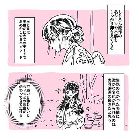 サイゾーウーマン男性アイドルSTARTO(旧ジャニーズ)Snow Man目黒 蓮スノ目黒が『わた婚』で見せた可愛すぎる姿 男性アイドル [ジャニオタ漫画家・竜田トキヒロの“推し事”見聞録]vol.2 【ジャニオタマンガ】Snow Man・目黒蓮、映画『わたしの幸せな結婚』でさらに売れると確信したワケ 2023/03/29 21:00 竜田トキヒロ(マンガ家) 竜田トキヒロの“推し事”見聞録Snow Man目黒蓮 Snow Man・目黒蓮はさらに売れる? 『わたしの幸せな結婚』で見せた、“可愛すぎる姿” サイゾーウーマン ジャニーズ情報専用Twitterアカウント「J担しぃちゃん」オープン フォローはこちらから 【ジャニオタマンガ】岡田准一から始まり、ジャニーズJr.・7 MEN 侍沼へ……漫画家・竜田トキヒロ連載始動――Twitterで日々、ジャニーズタレントにまつわるイラストを投稿中のジャニオタ漫画家・竜田トキヒロが、現場レポートからドラマや映画、番組レビューまで、“推し事”の様子を...サイゾーウーマン2023.03.22 前のページ12 竜田トキヒロ(マンガ家) 漫画家、イラストレーター。育休中に執筆したエッセイ漫画でKADOKAWAコミックエッセイ大賞受賞。Ameba、ライブドア公式ブロガーを経たのち現在はインフルエンサーとしてエンタメ、オタクに特化した漫画やイラストや体験ルポ等幅広く執筆。著書『コミュ障母さんとごきげん娘』(KADOKAWA) X:@musumenuma 最終更新:2023/03/29 21:00 めめって、不意に見せるぽやぽやしたところも魅力だよね 関連記事 【ジャニオタマンガ】岡田准一から始まり、ジャニーズJr.・7 MEN 侍沼へ……漫画家・竜田トキヒロ連載始動目黒蓮、『シン・仮面ライダー』破る快挙――映画『わたしの幸せな結婚』1位に業界騒然のワケSnow Man・目黒蓮、『冒険少年』で原嘉孝と共演し大反響も……ファンに向けたインスタ投稿めぐり物議Snow Man・目黒蓮主演報道の『トリリオンゲーム』ドラマ化発表も、不安の声が上がるワケSnow Man・目黒蓮は「持ってる男」? メンバー全員勝てなかった○○に勝利! 次の記事 スノスト『少クラ』卒業か >
