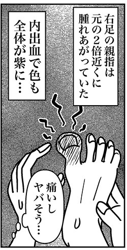 サイゾーウーマンカルチャーマンガアラフォー婚活、親指が紫色に…… カルチャー まんが『オバサンと言われても結婚したい!』250話 【アラフォー婚活ルポ】親指が紫色に……海外でケガをする大変さを実感 2023/07/02 13:30 白戸ミフル(マンガ家) オバサンと言われても結婚したい! ――合コン歴20年以上、累計回数2,500回以上、30代なかばに乳がんで闘病するも、現在は絶賛婚活中のライター・漫画家の白戸ミフルが「アラフォー婚活」の実体験をほぼリアルタイムでお届けします! アラフォー中の結婚は成就するのか……!? 【前回まで】 20代男子にセフレにされかけた痛い経験をバネにして「婚活の鬼」になった私。マッチングアプリを中心に行動中! 連休を利用して韓国旅行に行ったものの、ユニットバスで足の指をぶつけ薬局で看てもらうことに。海外でケガをする大変さを痛感する……。 250話『親指が紫色に……海外でケガをする大変さを実感』 次のページ 筋肉痛ではないが? 123次のページ 関連記事 【アラフォー婚活ルポ】アプリで出会った彼氏とスピード破局! イケメンだったのに惜しいことした?【アラフォー婚活ルポ】アプリ婚活を再開! コミュニティで共通の話題のある人を探す!【アラフォー婚活ルポ】なんつーイケメン!!! 銀座に降臨した美しき婚活男性【アラフォー婚活ルポ】39歳でフラれた私は「鬼」になった! 恋愛してやる!! 【アラフォー婚活ルポ】結婚相談所の紹介は○○……アラフォー3人、2021年の婚活を振り返る! その他の作品を読む