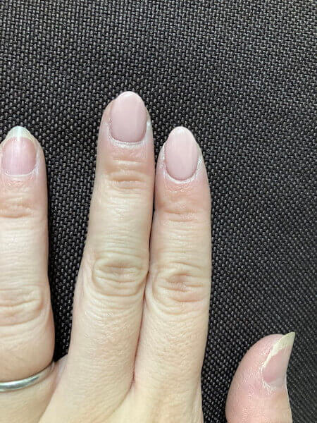 サイゾーウーマン暮らし100均・雑貨ネイリストが教える百均セルフネイル 暮らし ネイリストが教える100均ジェルネイル 100均ジェルネイルのおすすめ、ネイリストが使って比較! 誰でもできる上手なやり方は? フットもセルフで 2023/07/31 15:00 maity(元ネイリスト) トレンド ネイリストが伝授! 100均ジェルネイルの上手な塗り方 1:サンディング不要なジェルなので、まずはしっかり油分や汚れをエタノールなどで除去。 2:ベースジェルを塗布(※ダイソーのベースジェルは流れにくいので、落ち着いて塗れます)。 3:ライトで60秒硬化。 ※注意※ ライトで硬化する際に熱く感じることはなかったですが、硬化後に固まっていない未硬化ジェルが多めでした。もう一度ライトを当てるほどではなかったので、そのままカラージェルを塗布しましたが、べたつきはあるのでほこりや服につかないように注意。 硬化する際に熱さを感じることはなかったです(C)サイゾーウーマン 4:カラージェルを塗布。 5:ライトで60秒硬化(カラージェルはベースジェルとは異なり、未硬化ジェルは少ない印象です)。 今回私が選んだ色はピンクベージュです。(C)サイゾーウーマン カラージェルを塗布する際、1度目は少し色ムラがありましたが、2度目で色ムラはなくなりました。2度目でこの色合いは発色がとてもよいですね。 1度目を塗り終えたところ、少し色ムラができてしまいました(C)サイゾーウーマン 6:トップコートを塗布(分厚く塗らないこと)。 7:ライトで1分硬化して完成! ※注意※ トップコートは粘度があるのでぷっくりとした形が作りやすいと思います。ただ硬化したときに熱が発生したので、ぷっくりさせようと一度に分厚く塗るのはおすすめしません。 人差し指:ダイソートップコート、中指:プロ用トップコートで仕上げ(C)サイゾーウーマン 完成! ノンワイプトップコートということで、記載通り1分硬化すると未硬化ジェルも残らずきれいに仕上がりました。 プロ用トップコートと遜色ないツヤ なお、今回はトップコートだけプロ用のものを使って比較もしてみました。 【人差し指】トップコートまですべてダイソーを使用 【中指】ベース、カラーはダイソー。トップコートのみプロ用ジェルを使用 どうでしょうか? ツヤに差は見られませんよね。3,000円程するプロ用トップコートと遜色ないツヤ感が110円のジェルで出せるとは衝撃です。 次のページ 【キャンドゥ】UVライトで固まらないジェルが…… 前のページ12345次のページ 関連記事 100均ネイルシールおすすめはダイソーよりセリア! ネイリストが比較レビュー、長持ちするやり方は?韓国発の人気ネイルシール「オホーラ」が50%オフ!? 先着20名セールに挑んだ結果……ネイリストが警告! 爪トラブルを回避するケアとは......緑色に変色!? 爪のおしゃれに潜むトラブルが増加中 元ネイリストが教える! ジェルネイル初心者が“やってはいけないこと”ランキングベスト5