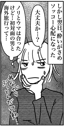 サイゾーウーマンカルチャーマンガアラフォー婚活、初対面で海外旅行 カルチャー まんが『オバサンと言われても結婚したい!』269話 【アラフォー婚活ルポ】初対面で海外旅行を予約も、さっそく先行きが不安…… 2023/09/06 23:55 白戸ミフル(マンガ家) オバサンと言われても結婚したい! しかし翌日…… 次のページ ラブはなし? 前のページ123次のページ 関連記事 【アラフォー婚活ルポ】アプリで出会った彼氏とスピード破局! イケメンだったのに惜しいことした?【アラフォー婚活ルポ】アプリ婚活を再開! コミュニティで共通の話題のある人を探す!【アラフォー婚活ルポ】なんつーイケメン!!! 銀座に降臨した美しき婚活男性【アラフォー婚活ルポ】39歳でフラれた私は「鬼」になった! 恋愛してやる!! 【アラフォー婚活ルポ】結婚相談所の紹介は○○……アラフォー3人、2021年の婚活を振り返る! その他の作品を読む