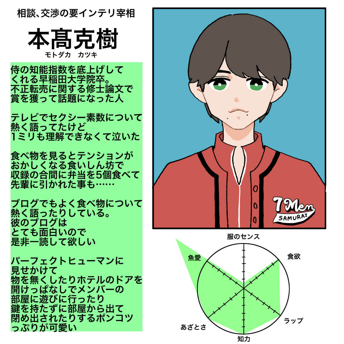 サイゾーウーマン男性アイドルSTARTO(旧ジャニーズ)ジュニア7 MEN 侍7 MEN 侍ステマシート 男性アイドル [ジャニオタ漫画家・竜田トキヒロの“推し事”見聞録]vol.22 【ジャニオタマンガ】中村嶺亜は「不動の皇帝」矢花黎は「軍師」! 7 MEN 侍ステマシート 2023/09/06 21:00 竜田トキヒロ(マンガ家) 竜田トキヒロの“推し事”見聞録ジャニーズJr.7 MEN 侍 7 MEN 侍メンバー6人の個性を徹底解剖!【レーダーチャートあり】 【ジャニオタマンガ】Aぇ! groupは「高スキル集団」! キャラの濃い6人の個性とは?――Twitterで日々、ジャニーズタレントにまつわるイラストを投稿中のジャニオタ漫画家・竜田トキヒロが、現場レポートからドラマや映画、番組レビューまで、“推し事”の様子を...サイゾーウーマン2023.07.05 【ジャニオタマンガ】美 少年は全員癖つよ――新参者が見た6人の“推しポイント”は?――Twitterで日々、ジャニーズタレントにまつわるイラストを投稿中のジャニオタ漫画家・竜田トキヒロが、現場レポートからドラマや映画、番組レビューまで、“推し事”の様子を...サイゾーウーマン2023.06.07 【ジャニオタマンガ】HiHi Jetsの魅力は「少年漫画」感――5人のステマシート大公開!――Twitterで日々、ジャニーズタレントにまつわるイラストを投稿中のジャニオタ漫画家・竜田トキヒロが、現場レポートからドラマや映画、番組レビューまで、“推し事”の様子を...サイゾーウーマン2023.04.19 前のページ12 竜田トキヒロ(マンガ家) 漫画家、イラストレーター。育休中に執筆したエッセイ漫画でKADOKAWAコミックエッセイ大賞受賞。Ameba、ライブドア公式ブロガーを経たのち現在はインフルエンサーとしてエンタメ、オタクに特化した漫画やイラストや体験ルポ等幅広く執筆。著書『コミュ障母さんとごきげん娘』(KADOKAWA) X:@musumenuma 最終更新:2023/09/06 23:03 あなたの推しは? 関連記事 【ジャニオタマンガ】映画『Gメン』は“愛されキャラ”岸優太にピッタリ! 門松勝太にみんなメロメロ【ジャニオタマンガ】ジャニーズJr.集結の『わっしょいCAMP』、井ノ原快彦社長の“愛”を感じたワケ【ジャニオタマンガ】SixTONES・ジェシーの悪役が怖すぎる!? 映画『リボルバー・リリー』レビュー【ジャニオタマンガ】目黒蓮&原嘉孝が“仲違い”? 『トリリオンゲーム』第4話プレイバック【ジャニオタマンガ】井ノ原快彦社長に思わず感謝? ジャニーズJr.・7 MEN 侍『サマパラ』レポ 次の記事 アラフォー婚活、初対面で海外旅行 >