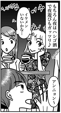 サイゾーウーマンカルチャーマンガアラフォー婚活、韓国・釜山を満喫! カルチャー まんが『オバサンと言われても結婚したい!』274話 【アラフォー婚活ルポ】韓国・釜山を満喫! 海鮮に美活、夜遊びでイケメンとの出会いも 2023/09/24 13:30 白戸ミフル(マンガ家) オバサンと言われても結婚したい! 夜遊びもガッツリ ――続きは9月27日公開! 【アラフォー婚活ルポ】セフレになる気はない! 「けじめ」のメッセージに対する返信は……――合コン歴20年以上、累計回数2,500回以上、30代なかばに乳がんで闘病するも、現在は絶賛婚活中のライター・漫画家の白戸ミフルが「アラフォー婚活」の実体験をほぼリアルタ...サイゾーウーマン2023.08.02 【アラフォー婚活ルポ】普段は優しい彼なのに……ホテルの前での一言に困惑――合コン歴20年以上、累計回数2,500回以上、30代なかばに乳がんで闘病するも、現在は絶賛婚活中のライター・漫画家の白戸ミフルが「アラフォー婚活」の実体験をほぼリアルタ...サイゾーウーマン2023.07.30 ――バックナンバーはこちら 前のページ123 白戸ミフル(マンガ家) 神奈川県出身。漫画家・ライター。タレント活動の後、マスコミ系の職業を渡り歩き、現在は化粧品メーカーに勤務。合コン歴20年以上、累計回数2500回以上。女性向けwebメディアほか、男性向けメディア、旅系メディア等でライターとして幅広く執筆。著書『合コン・アンド・ザ・シティ 恋活・婚活女子の合コンマニュアル』(ごきげんビジネス出版)、 『乳がんステージ4だった私が、それでも合コンに行きまくって救われた話』(キノブックス) 記事一覧 X:@takara0722 Instagram:@tamifull0722 【アラフォー闘病&婚活記】 最終更新:2023/09/24 13:30 相変わらずアクティブ! 関連記事 【アラフォー婚活ルポ】アプリで出会った彼氏とスピード破局! イケメンだったのに惜しいことした?【アラフォー婚活ルポ】アプリ婚活を再開! コミュニティで共通の話題のある人を探す!【アラフォー婚活ルポ】なんつーイケメン!!! 銀座に降臨した美しき婚活男性【アラフォー婚活ルポ】39歳でフラれた私は「鬼」になった! 恋愛してやる!! 【アラフォー婚活ルポ】結婚相談所の紹介は○○……アラフォー3人、2021年の婚活を振り返る! その他の作品を読む 次の記事 松村北斗とアイナにモヤモヤするファン >