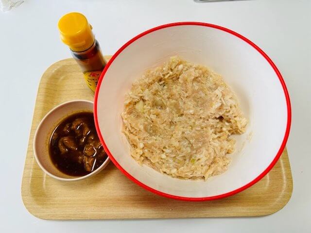 サイゾーウーマン暮らし食べ物和田明日香【絶対ふわふわ!鶏つくね】レシピ 暮らし 【あのツイッターレシピ、やってみました】 和田明日香【絶対ふわふわ!鶏つくね】作ったら、子どもがやみつき!! 豪快な食べっぷりがうれしいほくほくレシピ 2023/10/21 18:00 アウちゃん(ライター) ツイッターレシピ、やってみました 料理がまったくできない主婦の私。もう何年も夫が料理を担当していますが、子どもの成長とともに「いやでも作らなあかん時」に見舞われるように……。そこで「かんたん」「ラクチン」とTwitterで話題のレシピにチャレンジしていきます! 今日のレシピ:【絶対ふわふわ!鶏つくね】和田明日香 この投稿をInstagramで見る 家事ヤロウ!!!(テレビ朝日公式)(@kajiyarou)がシェアした投稿 先日の『家事ヤロウ!!!』(テレビ朝日系)で放送された「100円ショップお悩み解消グッズ」シリーズ。つくねを作る時に、100均の「つくねトング」で、ひき肉を挟んで振るだけでつくねを簡単に作ることができると話題の便利グッズを使い「ふわふわ鶏つくね」を紹介していたのは和田明日香さん。 作り方を見ると、これは私にも作れそうだと思いました。しかし、ここで料理のハードルが少し上がったのが100均のつくねトングを、わざわざ買いに行かないといけない? という疑問。そこは「手で丸めたらいけるでしょ」という軽い気持ちで、サクッとハードルを下げ、材料だけ買いにスーパーに行ってきました。では、作ってみましょう♪ 【材料】 長ネギ 40g えのき 100g 鶏ひき肉 400g 塩、胡椒 少々 おろし生姜 1片分 片栗粉 大さじ1 味噌砂糖 大さじ3 みりん 大さじ3 しょう油 大さじ1 砂糖 小さじ1 (レシピは『家事ヤロウ!!!』公式アカウントより) (1)長ネギ(40g)をみじん切り、えのき(100g)を4ミリ幅に切る 終盤に使う味噌ダレも先に作りました。これで準備完了! 材料(C)サイゾーウーマン (2)ボウルに鶏ひき肉(400g)塩(少々)胡椒(少々)を入れて粘りがでるまでこねる (3)長ネギ、えのき、おろし生姜(1片分)、片栗粉(大さじ1)を入れて更にこねる 肉をこねました(C)サイゾーウーマン トングがなくてもできる!(C)サイゾーウーマン (4)つくねトングの型用に③を入れ、トングを閉じてストッパーを付ける (周りについたひき肉はスプーンで落とす) (5)5秒ほど強めに振り、お皿に出す ここで登場するのが、100均の「つくねとング」です。しかし、便利グッズは買ってないので手で丸めました。100円浮いた気がして地味にうれしい。 しっかり焼きます(C)サイゾーウーマン (6)5をごま油(適量)を熱したフライパンに強火で両面しっかり焼き色がつくまで焼く (7)焼き色がついたら蓋をして弱火で5分焼く (8)味噌(大さじ3)みりん(大さじ3)しょう油(大さじ1)砂糖(小さじ1)を混ぜ味噌ダレを作り、絡めながらこんがり焼きすだちを添えたら完成! 先に作っておいた味噌ダレをよく混ぜました。すだちがないまま完成です! 次のページ 和田明日香【絶対ふわふわ!鶏つくね】、小さな子どもたちもバクバクいける 12次のページ 関連記事 『家事ヤロウ!!!』【明太ごま油卵かけご飯】作ってみた! 衝撃的な福岡の地元飯レシピだった和田明日香さん人気レシピまとめ! 『家事ヤロウ』メニューを作ってみた【2023年8月最新】山本ゆりさん【レンチン納豆チャーハン】作ったら、天才的なうまさ! 子どもにも大ウケでリピ確定レシピ!山本ゆりさん「イライラしているときでも作れる」料理ほか、16人の料理家による役に立つ“食”エッセイ和田明日香【あと一品ソテー】、“料理がしんどい日”レシピはホント簡単だった! 子どもの好みに合いそう!
