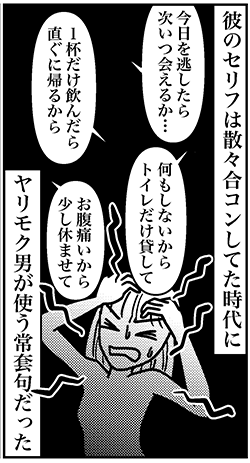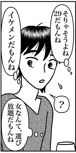 サイゾーウーマンカルチャーマンガアラフォー婚活、これはヤリモク? カルチャー まんが『オバサンと言われても結婚したい!』286話 【アラフォー婚活ルポ】アプリのイケメンはヤリモク? ちゃんと付き合いたいのに…… 2023/11/05 13:30 白戸ミフル(マンガ家) オバサンと言われても結婚したい! 散々合コンしてきた時代に…… ――続きは11月8日公開! 【アラフォー婚活ルポ】ワイン会は年齢層高め? 同世代男性もいるものの……――合コン歴20年以上、累計回数2,500回以上、30代なかばに乳がんで闘病するも、現在は絶賛婚活中のライター・漫画家の白戸ミフルが「アラフォー婚活」の実体験をほぼリアルタ...サイゾーウーマン2023.10.22 【アラフォー婚活ルポ】同僚に誘われワイン会に参加! ドキドキしながら会場に入ると……――合コン歴20年以上、累計回数2,500回以上、30代なかばに乳がんで闘病するも、現在は絶賛婚活中のライター・漫画家の白戸ミフルが「アラフォー婚活」の実体験をほぼリアルタ...サイゾーウーマン2023.10.18 ――バックナンバーはこちら 前のページ123 白戸ミフル(マンガ家) 神奈川県出身。漫画家・ライター。タレント活動の後、マスコミ系の職業を渡り歩き、現在は化粧品メーカーに勤務。合コン歴20年以上、累計回数2500回以上。女性向けwebメディアほか、男性向けメディア、旅系メディア等でライターとして幅広く執筆。著書『合コン・アンド・ザ・シティ 恋活・婚活女子の合コンマニュアル』(ごきげんビジネス出版)、 『乳がんステージ4だった私が、それでも合コンに行きまくって救われた話』(キノブックス) 記事一覧 X:@takara0722 Instagram:@tamifull0722 【アラフォー闘病&婚活記】 最終更新:2023/11/05 13:30 ヤリモクは婚活の天敵 関連記事 【アラフォー婚活ルポ】アプリで出会った彼氏とスピード破局! イケメンだったのに惜しいことした?【アラフォー婚活ルポ】アプリ婚活を再開! コミュニティで共通の話題のある人を探す!【アラフォー婚活ルポ】なんつーイケメン!!! 銀座に降臨した美しき婚活男性【アラフォー婚活ルポ】39歳でフラれた私は「鬼」になった! 恋愛してやる!! 【アラフォー婚活ルポ】結婚相談所の紹介は○○……アラフォー3人、2021年の婚活を振り返る! その他の作品を読む 次の記事 日曜劇場に愛される男・鈴木亮平 >