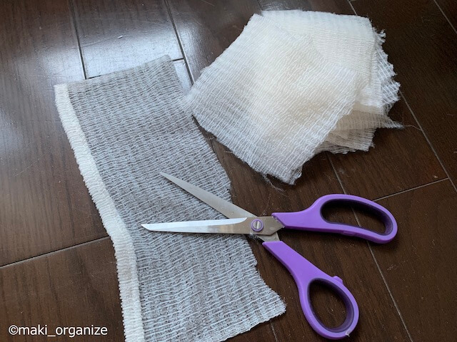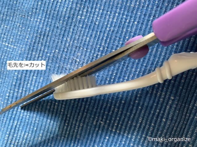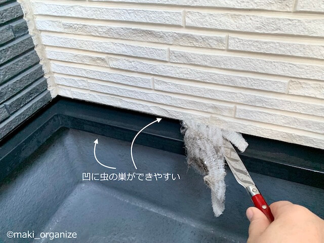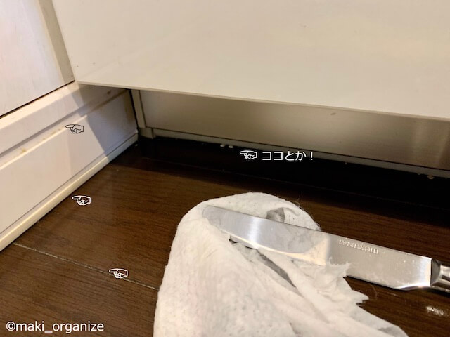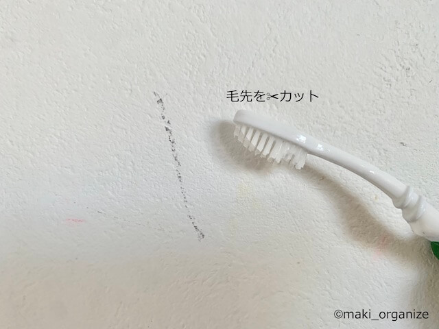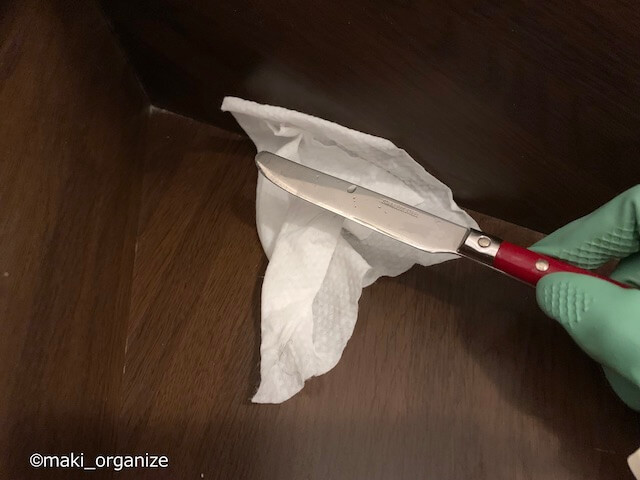 サイゾーウーマン暮らし住まい知らないと損する7種の掃除グッズ 暮らし 伊藤まきの「お片付けSOS」相談! 年末大掃除に便利な【0円グッズ】6つ! 家にあるモノを「使い切る」プロ技とは? 2023/12/12 17:00 伊藤まき(収納ライター) 「お片付け・お掃除SOS」伊藤まき 整理収納アドバイザーの伊藤まきが、片付けに訪問した現場で「よくやる作業」「よく伝えるおすすめ収納法」を【プロの技】シリーズとして紹介していきます! (C)maki_organize いよいよ大掃除シーズン到来です。年末年始は、出費ばかりで大変ですよね。ということで、今回は「家にある7種のアレ」を使った掃除法を紹介します。知らないと損する「0円」の掃除グッズで「一年の汚れ」をスッキリ落としましょう! 「家にあるモノ」を使い切る掃除といえば、古着やタオルを使い切るのが定番ですね。今回紹介する6つのアレも、ほとんどの「家にあるモノ」です。年末のために用意する必要がなく、0円掃除ができます。 便利な大掃除グッズ:目次 (1)手が届かない隙間に「カトラリーナイフ」 (2)毛先を切った「歯ブラシ」 (3)古い「ボディタオル」 (4)折れない「ヘアピン」 (5)水かけ流し掃除に「食器用洗剤ボトル」 (6)ホコリ取りに優秀「モコモコ素材」 便利な大掃除グッズ.1:手が届かない隙間に「カトラリーナイフ」 角や隅の詰まりを取り除く(C)maki_organize キッチンの「カトラリーナイフ」が、細かい掃除にうってつけです。通常は「掃除用ヘラ」を使いますが、持っている家がないのでナイフを使います。例えば、部屋の床と壁の間にある「巾木」の凹凸や手が入らない隙間におすすめ。力の加減が付くので、手力より強く落とすことができます。 キッチン戸棚の下、床、壁、巾木など調味料の汚れに◎(C)maki_organize 注意点は、材質を傷めやすい金属製ということ。なので「ナイフの背の側」で「当て布」をつけます。ほかにも、定規やプラスチックカードもヘラの代用品ですがナイフの方が強い力で落とすことができます。 便利な大掃除グッズ.2:毛先を切った「歯ブラシ」 歯ブラシの毛を、5mm程度の短さにカット(C)maki_organize 使用済みの「歯ブラシ」を、隙間の掃除用に保管するのは定番です。ハサミで短く切ることで、先端の毛に硬さが出ます。毛がしなることなく、汚れをキャッチするので「壁紙の汚れ」に最適です。 ヘッドの毛先が短いほど、硬さが出ます(C)maki_organize とくに「白い壁紙の汚れ」に向いています。子どもの落書きや手垢、飛び散った調味料も「薄めた中性洗剤」を付けてこすると、高確率で落ちます。ただし、壁紙の表面が少し摩耗します。そのため、白い壁紙のみできる落とし方になります。 歯ブラシの研磨力が強くなるので、カビや水アカ汚れにも応用できます。ただし、力強くこするとゴムや塗膜が剥がれやすくなるので要注意。 この投稿をInstagramで見る 整理収納アドバイザー|伊藤まき|東京区内(@maki_organize)がシェアした投稿 便利な大掃除グッズ.3:古い「ボディタオル」 好みのサイズにカットしておく(C)maki_organize お風呂の「ボディタオル」も、一年の最後に使い切ります。お好みのサイズにハサミで切るだけで、「触りたくない汚れ専用」になります! 屋外の見えない凹部分は、虫の家になりがち(C)maki_organize 例えば、屋外の凹凸部分は虫の巣ができやすいので、埃と砂汚れを絡めとって落とします。ほか、触りたくない排水溝の汚れ、真っ黒になる玄関まわりの汚れにおすすめ。 注意点は「ボディタオルの硬さ」です。柔らかいタイプは、傷をつけたくない水回りに(人工大理石、プラスチックなどの材質)。硬めタイプでは、玄関のたたきや屋外など硬い場所(タイルや石素材)向きです。 便利な大掃除グッズ4:折れない「ヘアピン」 ヘアピンより細い、Uピンもおすすめ(C)maki_organize 細かい溝の汚れに、爪楊枝を使ったことはありませんか? 筆者宅には、犬が2匹もいるので「窓のサッシ」に抜け毛が詰まります。爪楊枝だと折れるので、ヘアピンや歯間ブラシを使います。 ともに、芯が鉄製なので折れる心配がありません。家中の小さな溝に詰まった「ミクロな凹凸掃除」に役立ちます。 サッシの凹凸に、犬の毛が大量に詰まります(C)maki_organize ただしどちらも「鉄製」なので、汚れた場所に傷がつくリスクが高いです。ですので、先端を柔らかいコットンで包み直に当たらないよう注意が必要です。 便利な大掃除グッズ.5:水かけ流し掃除に「食器用洗剤ボトル」 手の感触だから、水圧の調整も自由自在(C)maki_organize 窓まわりや玄関など、少量の水を使って「水かけ掃除」をしたい場所には「食器用洗剤のボトル」が便利。現代の小型サイズ(約250ml)より、昔のサイズ(約600ml)がおすすめです。片手で握りやすく水の強弱がつけやすいので、ポイントを狙って噴射できます。トイレタンクやシンクまわりにも◎。 この投稿をInstagramで見る 整理収納アドバイザー|伊藤まき|東京区内(@maki_organize)がシェアした投稿 とはいえ「600mlサイズの洗剤」が家にあ