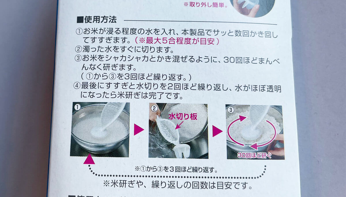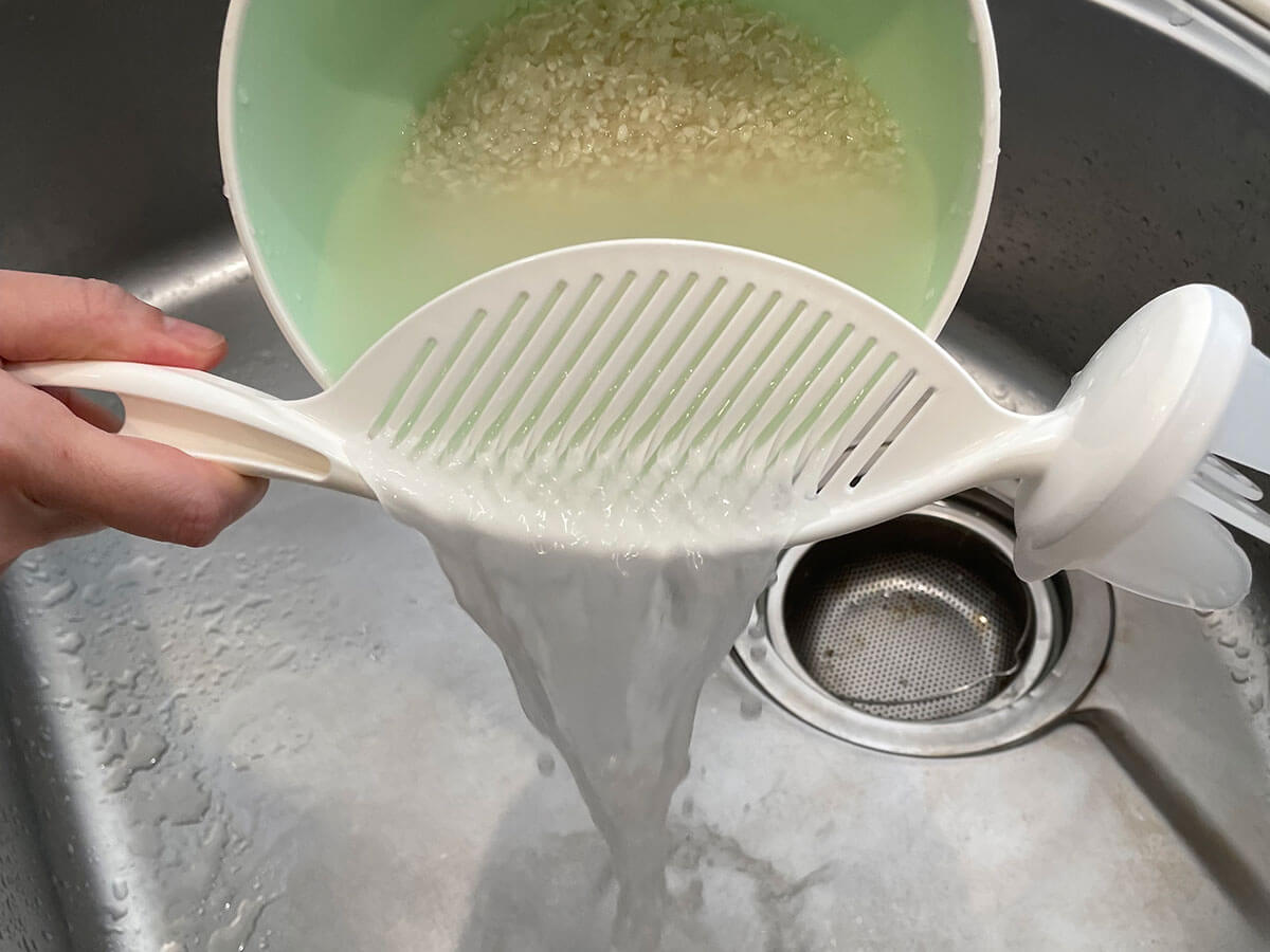 サイゾーウーマン暮らしトレンドスリコの米とぎグッズを検証 暮らし 時短キッチングッズ、徹底検証! 【3COINS新商品】米とぎグッズ「便利」の口コミを検証! タイパ優先主婦が【100均】と比較 2024/01/22 15:00 サイゾーウーマン編集部(@cyzowoman) ダイソーセリアスリーコインズ スリコの大型店舗「3COINS+plus」の外観(C)サイゾーウーマン フルタイムで働きながら2人の子どもを育て、超苦手な家事もむりやりこなしているのに、夫は家で寝てばかり……そんな事情から“タイパ至上主義”となった主婦ライターが、巷で話題の“時短グッズ”の実力を検証するこの企画。 今回は、3COINS(通称スリコ)で今月発売されるやいなや、売り切れ続出の大人気商品となっている「米洗いストレーナー」(税込550円)と、ダイソー・セリア・キャンドゥといった多くの100円ショップで売られている「なるほど米とぎ」(税込110円)を実際に使用し、忖度ゼロでレポートします。 目次 ・売り切れ続出の3COINS新商品「米洗いストレーナー」とは? ・3COINS「米洗いストレーナー」を検証、思ってたのと違う! ・ダイソー、セリア、キャンドゥの米とぎグッズ「なるほど米とぎ」の使い方は? ・100均米とぎグッズ「なるほど米とぎ」を検証! なぜもっと早く買わなかったのか…… ・【結論】100均の「なるほど米とぎ」があればいい! スリコは細かい説明を 売り切れ続出の3COINS新商品「米洗いストレーナー」とは? 本格的な冬が到来し、冷たい水で米をとぐ作業にヒーヒー言っていたところ、スリコの新商品「米洗いストレーナー」をSNSでたまたま発見! 使用者の口コミには、「手を濡らさず、片手で簡単に操作可能なので助かります」「水の勢いで米が洗えるので、手が荒れなくて良い」と賛辞が目立ちます。 早速、我が家のキッチンに取り入れるべく、マッハの速さでスリコへ向かいました。 スリコのタイパグッズコーナー(C)サイゾーウーマン 最寄りのスリコに着くと、タイパグッズコーナーは発見したものの、「米洗いストレーナー」がない! 店員さんに聞くと、「大人気ですぐ売り切れてしまって……再入荷時期も未定です」とのこと。 しかし、すぐさまスリコの公式通販サイトを覗くと「在庫あり」の表示! すぐさまポチり、この翌日にサイトを見ると「在庫なし」に……危ないところでした。 無事にゲット! スリコはデザインがおしゃれ(C)サイゾーウーマン 3COINS「米洗いストレーナー」を検証、思ってたのと違う! スーパーで山積みになっていたオーソドックスな米で検証します(C)サイゾーウーマン 口コミに「米が多いとあふれる」とあったので、とりあえず茨城県産コシヒカリを1合だけ洗ってみることに。フタをはずし、米を入れます。 使用方法の説明はこれだけ(C)サイゾーウーマン パッケージに書いてある使い方は、以下の2ステップ。 (1)お米を入れた状態で、丸い穴から水を入れます。 (2)フタを押さえながら線状の穴から水切りをします。 ずいぶん簡単な説明ですが、これって容器が水でいっぱいになったら水切りを始めるってことでいいんですかね? あと、まだ水が濁ってたら(1)と(2)の作業を何度か繰り返す……ってこと? それとも水切りは一度だけ? まあ、迷っていても仕方ないので、とりあえずやってみます。 中で水がシャワー状に広がる(C)サイゾーウーマン フタの丸い穴から水道水を入れると、細かい穴を通って容器の中で水がシャワー状に。水が濁っていて米がどんな状態になっているかはよく見えませんでしたが、水の勢いで米が舞っている印象は多少ありました。 水切り時に米が飛び出さない!(C)サイゾーウーマン 容器から水があふれてしばらくしてから、一度水切りすることに。フタを親指で簡単に押さえらえる構造になっているため、シンクにお米が流れていく心配はありません。 まだ水が濁っていたので、この作業を何度か繰り返します。 6回水切りし、新たに水を入れたところ(C)サイゾーウーマン 7回水切りし、新たに水を入れたところ(C)サイゾーウーマン 私のやり方が間違っているのでしょうか……なかなか水がクリアになりません。 7回目の水切り作業を終えたところで水を大量に使っていることに気づき、いったん終了。多少水はにごっていますが、許容範囲と判断し、今日はこれで炊くことにします。 それにしても7回って……手でとぐ際は、多くても4~5回ほど水切りすればだいたい作業が終了していたため、これは想定外の事態です。タイパ的にはいまいちと言わざるを得ないでしょう。 ダイソー、セリア、キャンドゥの米とぎグッズ「なるほど米とぎ」の使い方は? あらゆる100均で見かける「なるほど米とぎ」(C)サイゾーウーマン 「なるほど米とぎ」の使用方法(C)サイゾーウーマン 続いて、ダイソー、セリア、キャンドゥなど多くの100円ショップで見かける「なるほど米とぎ」を使ってみます。こちらは「イノマタ化学」が製造する商品です。 パッケージに記載されている使用方法は以下のとおり。 (1)お米が浸る程度の水を