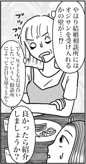 サイゾーウーマンカルチャーマンガアラフォー婚活、紹介! ぜひ! カルチャー まんが『オバサンと言われても結婚したい!』313話 【アラフォー婚活ルポ】紹介! ぜひ! 百聞は一見にしかず 2024/02/14 13:30 白戸ミフル(マンガ家) オバサンと言われても結婚したい! ――合コン歴20年以上、累計回数2,500回以上、30代なかばに乳がんで闘病するも、現在は絶賛婚活中のライター・漫画家の白戸ミフルが「アラフォー婚活」の実体験をほぼリアルタイムでお届けします! アラフォー中の結婚は成就するのか……!? 【前回まで】 おっさんから「おばさん」呼ばわりされた経験をバネにして、「婚活の鬼」になった私。45歳、まだ婚活中のなかで会社の人が電撃結婚した話を聞いた! 314話『紹介! ぜひ! 百聞は一見にしかず』 次のページ 会員数は日本一です 123次のページ 関連記事 【アラフォー婚活ルポ】なぬっ!? 来週誕生日なのに、最悪……【アラフォー婚活ルポ】誕生日は1人決定かな……【アラフォー婚活ルポ】年下イケメンから届いた一言LINE……なめやがって!【アラフォー婚活ルポ】39歳でフラれた私は「鬼」になった! 恋愛してやる!! 【アラフォー婚活ルポ】結婚相談所の紹介は○○……アラフォー3人、2021年の婚活を振り返る! その他の作品を読む