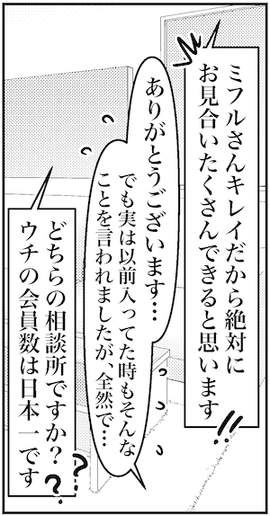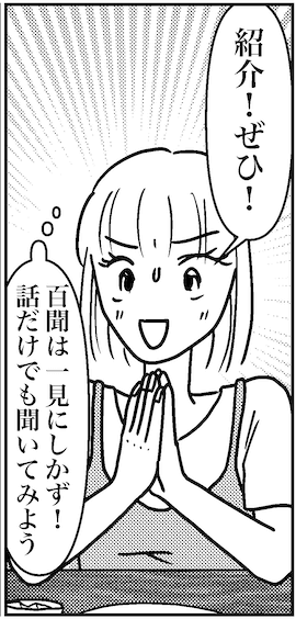 サイゾーウーマンカルチャーマンガアラフォー婚活、紹介! ぜひ! カルチャー まんが『オバサンと言われても結婚したい!』313話 【アラフォー婚活ルポ】紹介! ぜひ! 百聞は一見にしかず 2024/02/14 13:30 白戸ミフル(マンガ家) オバサンと言われても結婚したい! 会員数は日本一です 次のページ 必ずお見合いできる 前のページ123次のページ 関連記事 【アラフォー婚活ルポ】なぬっ!? 来週誕生日なのに、最悪……【アラフォー婚活ルポ】誕生日は1人決定かな……【アラフォー婚活ルポ】年下イケメンから届いた一言LINE……なめやがって!【アラフォー婚活ルポ】39歳でフラれた私は「鬼」になった! 恋愛してやる!! 【アラフォー婚活ルポ】結婚相談所の紹介は○○……アラフォー3人、2021年の婚活を振り返る! その他の作品を読む