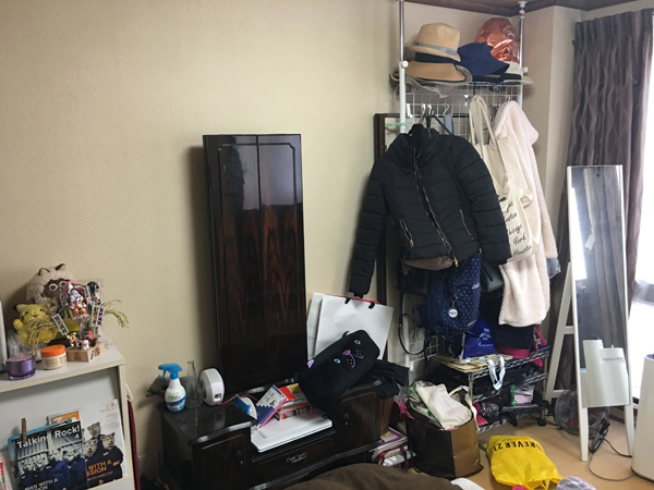 サイゾーウーマン暮らし住まい汚部屋にジャニーズ・Jリーググッズが埋もれる37歳 暮らし 30代女子の「煩悩部屋」ビフォーアフター 「汚部屋にジャニーズ・Jリーググッズが埋もれる37歳」片付けを阻む“亡き母の教え”とは? 2024/03/17 13:00 伊藤まき(収納ライター) 「汚部屋」ビフォーアフター伊藤まき (C)サイゾーウーマン 20代の捨てられない思い出、過去の恋愛、三日坊主のアイテム、蓄積された趣味のコレクション、不安の数だけ溜まるストック商品……。収納ライター・伊藤まきさんが、30代・女性のひとり暮らしにありがちな、モノと煩悩に支配された“汚部屋”を一掃。ゴミという名の過去を捨て、心ごと汚れを洗い流し、願いが叶う“悟り部屋”に変えていきます! ※2019年5月20日公開記事を再編集しています。 目次 ・37歳、バリキャリのKさん ・いつか使うから!? 詰め込みすぎるキッチンラック ・油でベッタベタのキッチン! ・とりあえず床に「直置き」! ・ジャニーズやJリーグのコレクションがどっさり ・壁面収納には衣類や帽子が山積み ・押入れは家族の思い出と捨てられないモノがギッシリ ・母の教えを受け継いだ ・片付けの壁とは? 37歳、バリキャリのKさん お久しぶりの連載企画『30代女子の「煩悩部屋」ビフォーアフター』がはじまります! 第4回目のクライアントは、東京の中野区に住む女性Kさん(37歳)。家賃8万円の1DKアパートに10年ほど住む、バリキャリお姉さんです。 1枚の写真に「思い出にとらわれず、スッキリしたい」という言葉を添え応募してくれました。彼女が抱える、片付けられない問題とは……? [応募写真]とにかく“量”が多いのがわかる1枚 写真からは、食品ストックの山、レジ袋の山、タオルの山が見えます。ひとり暮らしにしては、多すぎる量ですね。まずは、住人の紹介を兼ねながら部屋全体を覗いてみましょう! いつか使うから!? 詰め込みすぎるキッチンラック [キッチン]もったいない精神が誰よりも高め女子! 玄関を開けると、スチールラックが2つ。ひとりでは多すぎるモノが、ひたすら詰め込んでありました。隙間を見つけては、置いたモノなども目立ちます。とりあえず見えなければ美的と考えて、カーテンで目隠しをしていました。 油コーティングでベッタベタのキッチン! [キッチン]見える収納で、生活感がたっぷり漂います 塩がいっぱいありますが、集めているとか? 「友だちからの旅土産です。お酒と塩が定番で、居酒屋かってぐらい(笑)」とKさん。奥に見える、3本の歯ブラシも友だちが使ったモノだそう。 とりあえず「直置き」! [ソファ周り]コスメ類もまた、無造作に詰め込みまくり!? ダイニングキッチンの奥には、赤いソファがありました。壁との隙間20cmに何が良いかわからぬまま、コスメが山積みになってしまったそう。「お金をかけてまで、収納家具を増やしたくないので……。でも何とかしたいです」とKさん。 よく見ると、部屋全体のインテリアがバラバラです。好みの統一性が見えない件を問うと、「この赤いソファだけ、自分で選んで買ったモノです」とニッコリ。ここでもまた、友だちからの愛の気配が感じられます。 ジャニーズやJリーグのコレクションがどっさり [趣味のコレクション]熱い記憶が刻み込まれた青春グッズ ソファの下からは、ジャニーズやJリーグに夢中になっていた思い出コレクションが登場! 袋の中には、丁寧に集めた新聞紙の切り抜きがどっさり! 今では入手困難の選手サインも大切に持っていました。でも、こういった昭和グッズって、実家に置きっぱなしがほとんどでは? 実はKさん、若くして大変な苦労をされていました。 「母が入院したので、実家をたたみました。3人兄弟の末っ子ですが、私しか親の世話をできる時間を作れません。そのため、会社の出社日数を減らして、親の介護や書類関係の手続き、実家の片付けまで一人で済ませました。これでもかなりの量を手放したのですが、まだ使える生活雑貨や思い出品が手放せなくて……」と、昭和感漂うモノが多い理由を明かしてくれました。 壁面収納には、衣類や帽子が山積み [寝室]昭和レトロにタイムトラベルしたかのよう……。 寝室にも、昭和の名残がありました。部屋の中央に、古い鏡台があります。こちらは、Kさんのお母さんが大切にしていた家具で、プロによる補修がされていました。友だちから譲り受けた壁面収納には、衣類や帽子が山積みです。床に直置きしたモノも多いので、掃除をするにも大変そう。でも比較的、散らかりも少なく掃除を怠っている様子はありません。見える部分は、きちんとしているのです。 押入れは家族の思い出と捨てられないモノがギッシリ [寝室]実家から持ち帰った思い出のモノがギッシリ 押入れを開けると、家族の思い出と捨てられないモノがギッシリ詰め込まれていました。ほかにも、来客のために用意している布団が目立ちます。もちろん、Kさんの私物も多めですが、それ以上に、「人の想いを気遣うモノ」に溢
