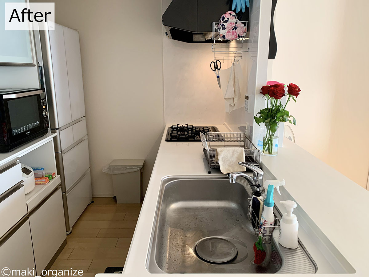 シンク周り全景After:「出しっぱなし」がなくなってスッキリした空間に