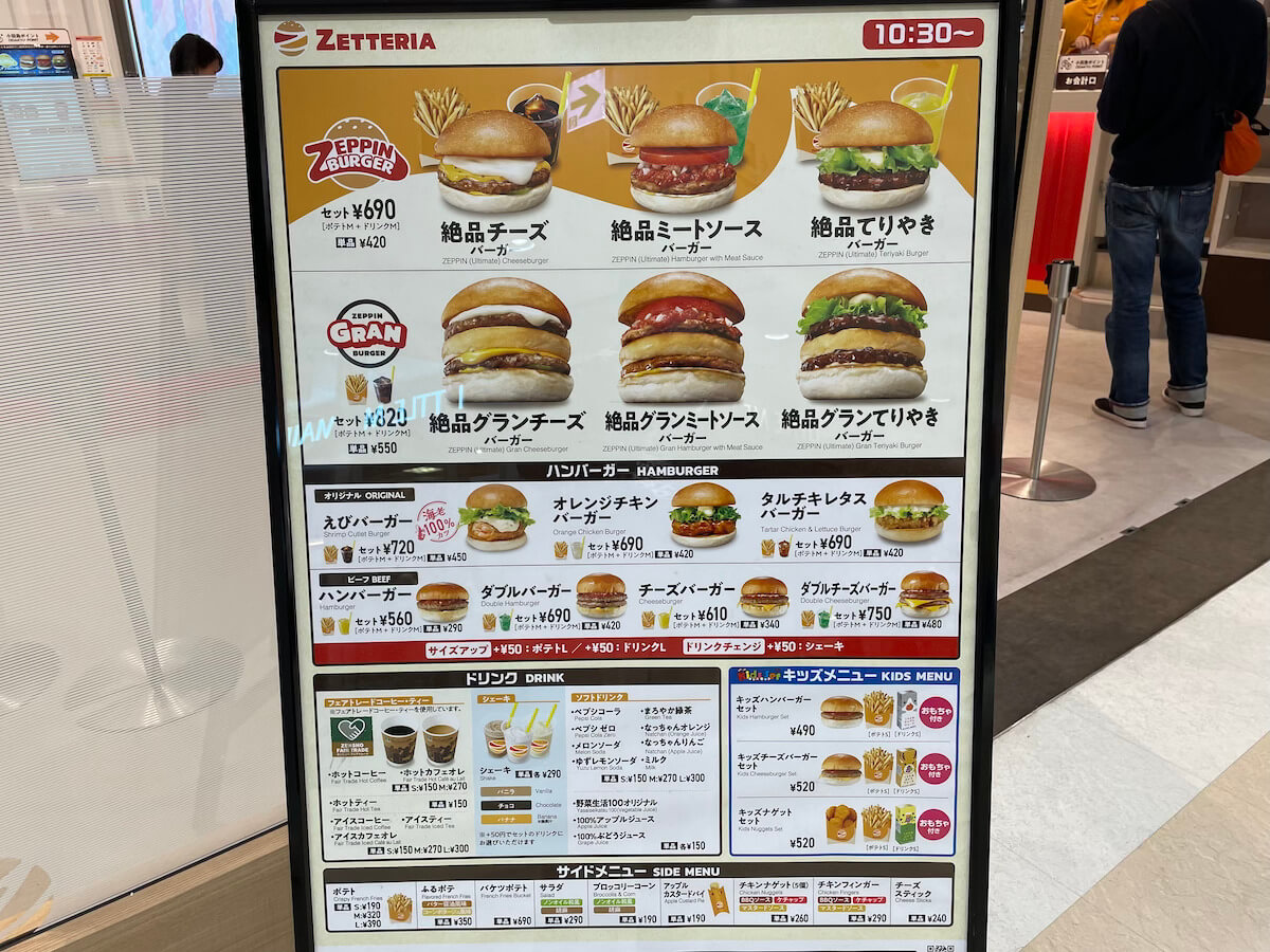 サイゾーウーマン暮らし食べ物【ロッテリア】新チェーンゼッテリアとは 暮らし 話題のチェーン店訪問 ロッテから売却された【ロッテリア】は今――新バーガーチェーン「ゼッテリア」で食べてわかった意外な姿 2024/04/15 19:30 サイゾーウーマン編集部 ロッテリア ゼッテリア外観(写真:サイゾーウーマン) 昨年4月、ゼンショーHDに売却されたハンバーガーチェーン「ロッテリア」。ロゴも店構えも「ロッテリア」そっくりの新業態「ゼッテリア」に行って、実際に食べてきました! 目次 ・ゼッテリアとは? ・ゼッテリアの店内 ・ゼッテリア「絶品ミートソースバーガー」セット実食 ・ゼッテリア、カフェ利用が使い勝手よし ゼッテリアとは? 店外から見た様子(写真:サイゾーウーマン) 2023年4月、ロッテホールディングスから「すき家」や「はま寿司」などを展開するゼンショーホールディングスに売却されたハンバーガーチェーンのロッテリア。同年9月には、新ブランド「ZETTERIA(ゼッテリア)」の1号店が東京都港区にオープンしました。24年4月現在、東京、埼玉、愛知、神奈川で7店舗を展開中。 ゼッテリアは、メイン商品の「絶品バーガー」と「カフェテリア」を組み合わせて生まれたブランド名。気軽に絶品バーガーを楽しめるよう、単品価格も現在のロッテリアが「絶品チーズバーガー」440円なのに対し、ゼッテリアは420円とやや安くなっています。 絶品バーガーとは? (写真:サイゾーウーマン) 2007年11月29日にロッテリアの新作として発売になった「絶品チーズバーガー」(当時、単品360円)。「余計な演出はせず、バンズ、肉、チーズ本来の味で勝負するという、ハンバーガーの原点に愚直に立ち帰る」商品で、08年春からは「量が少ない」との意見からパティを2枚に増量した「絶品Wチーズバーガー」(490円)を販売。 同11月には絶品シリーズ3品目「絶品ベーコンチーズバーガー」(420円)が販売になりました。 ゼッテリアで販売される絶品バーガーは、絶品チーズバーガー、絶品ミートソースバーガー、絶品てりやきバーガーの3種類とそれぞれをダブルにした絶品グランチーズバーガー、絶品グランミートソースバーガー、絶品グランてりやきバーガー。 絶品以外のハンバーガーもあり、えびバーガー、ハンバーガー、タルチキレタスバーガーなどがそろっています。 ゼッテリアの店内 日曜の昼12時に訪れると、店内は盛況です。注文・会計はタッチ式パネルを使ってセルフで完了。出来上がると店内モニターや店内アナウンスが番号で知らせてくれます。タッチパネルは高齢者には不慣れなシステムだと思うのですが、「苺シェークとアイスコーヒーがほしいの」という老夫婦にスタッフが丁寧に案内していたのが印象的でした。 カウンターではせわしなく調理してるのがうかがえました(写真:サイゾーウーマン) タッチパネルの注文(写真:サイゾーウーマン) 自分の番号が呼ばれるまでジーッとモニターを見つめる光景、なんだか病院の会計待ちと重なりました。 呼び出し画面(写真:サイゾーウーマン) 内装はウッディでカフェ感強め カフェテリアを想定しているだけあり、内装はカフェ感強め。椅子、テーブルは木製で、落ち着いた印象です。ハンバーガーチェーンというより、カフェチェーンの趣があります。 カウンター席にはコンセントあります(写真:サイゾーウーマン) コンセントが設置された席も用意され、Wi-Fiもフリーなのがうれしいところ。 写真はありませんが、一席ごとのボックス席があったのにはびっくり。大学生らしき女性が勉強していたり、まるで自習室のような雰囲気で、ほかにも席がある中ボックスは全部埋まってました。長居しても大丈夫そうなムードが、やっぱりファストフードよりもカフェっぽいですね。 額装された絵はよく見ると「絶品てりやきバーガー」とか「絶品チーズバーガー」と書かれていました(写真:サイゾーウーマン) ゼッテリア「絶品ミートソースバーガー」はモスバーガー似だけど…… 今回は「絶品バーガー」シリーズの「絶品ミートソースバーガー」をセットで注文しました。 バーガーを手にしてまず思ったのは「あれ、小さくない?」。マクドナルドより一回りほどコンパクトなサイズ感で、「そういえば絶品チーズバーガーも小さかったもんな」と思い出し納得しました。 バーガー、ドリンク、ポテトM(写真:サイゾーウーマン) 絶品ミートソースバーガーとは、「トマト・豚肉・玉ねぎ・セロリをじっくり煮込んだ特製ミートソースをたっぷりかけ、厚切りスライストマトと粗く刻んだ生の玉ねぎをアクセントとして加えました」とのこと。 絶品シリーズといえば、しっとり柔らかなバンズが特徴ですが、それゆえ潰れやすいデメリットも。今回もできたてなのにぺしゃんこになってしまって、見た目は少々残念。 なお、バンズの形について「従来の円形から、リブサンドなどに使われるホットドッグ型に変更されている」との記事を散見するものの、見たところは円形のよ