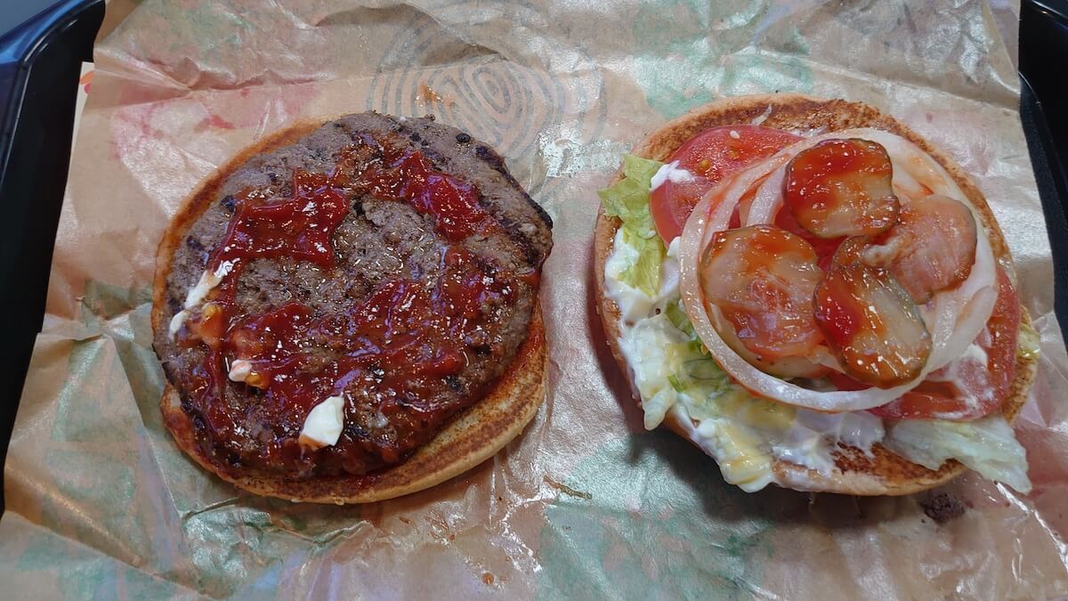 サイゾーウーマン暮らし食べ物【バーガーキング】食べてわかったマック以上の魅力 暮らし 話題のチェーン店探訪 急拡大【バーガーキング】、890円「ワッパーセット」実食でわかった熱烈に愛されるワケ 2024/05/23 21:00 阿左美賢治(ライター) マクドナルドバーガーキング (写真:サイゾーウーマン) 5月23日放送の『カンブリア宮殿』(テレビ東京系)は、「賛否両論でファンを獲得 バーガーキング復活劇の舞台裏」がテーマ。2023年に就任した野村一裕社長の”賛否両論”戦略に迫るとのこと。 ハンバーガーチェーンの「バーガーキング」は、19年に当時国内で展開していた99店舗のうち、22店舗を閉店するという苦境に立たされましたが、その後急速に店舗の拡大に成功。24年2月には店舗数を215まで伸ばすなど、華麗なV字回復を遂げています。好調な背景を知るべく、店舗を訪れ実食してきました。 ※当記事は2024年4月8日公開記事を再編集しています。 目次 ・【バーガーキング】店舗数215に急速拡大中! ・【バーガーキング】890円「ワッパーセット」実食 ・【バーガーキング】コスパは【マクドナルド】より良い? ・【バーガーキング】ガッツリとした味わいに惹かれる 【バーガーキング】店舗数215に急速拡大中! 店舗の壁にはキャッチコピーである「TASTE IS KING」の文字が(写真:サイゾーウーマン) ハンバーガーチェーンの「バーガーキング」。90年代半ばに日本上陸を果たしたものの、運営会社が西武商事からJTに代わるなどしたのち、2001年に日本から撤退。07年に再上陸を果たすも、運営会社が2度にわたり代わるなど、流浪のバーガーチェーンというイメージが強い方もいるのではないでしょうか? そんなバーガーキングといえば、19年に当時国内で展開していた99店舗のうち、22店舗も大量閉店するという苦境に立たされていましたが、その後急速に店舗の拡大に成功。24年2月には店舗数を215まで伸ばすなど、華麗なV字回復を遂げています。 同チェーンを運営する株式会社ビーケージャパンホールディングスは23年10月、国内200店舗を達成した際に「このペースで新規出店を進めると、今世紀中に3,000店を超え、国内の飲食チェーンにおいて、店舗数が日本一となります」と声明を出すなど、上り調子であることをアピール。そんな壮大すぎるビジョンを打ち出すほどに好調な同チェーンの実力を確かめるべく、店舗を訪れ実食してきました。 【バーガーキング】890円「ワッパーセット」実食 店舗入り口横にあったメニュー表(写真:サイゾーウーマン) 今回、筆者が実食したのは「バーガーキング」のフラッグシップメニューである「ワッパー」(590円、税込み/以下同)。 “並外れて大きなもの”という意味をもつ英単語のWHOPPERをそのまま商品名にしたこのハンバーガーは、同チェーン最初期にあたる1957年から続くメニューです。一般的なハンバーガーの1.4倍ほどのサイズであるというこの一品に、フレンチフライのMサイズ、ドリンクMサイズがついた「ワッパーセット」(890円)をオーダーしました。 ワッパーセット890円の全体図(写真:サイゾーウーマン) 以下、写真でその魅力をお伝えできればと思います。 ワッパー。名前の通り、かなりサイズは大きめです(写真:サイゾーウーマン) 包み紙を開けたワッパーの全体図。ごまが沢山ついたバンズが食欲をそそります(写真:サイゾーウーマン) 具はバンズの下にマヨネーズとキャベツ、トマトとオニオンがあり……(写真:サイゾーウーマン) さらにその下にケチャップとピクルス(写真:サイゾーウーマン) その下にパティがありました(写真:サイゾーウーマン) 「バーガーキング」のウリの一つは、“Made with flames.(炎で作り上げる)”というキャッチコピーがついた、直火焼100%のビーフパティです。 独自のブロイラーを用いて直火で調理されるパティは、公式サイトいわく“余分な脂は除去され必要な肉汁は溜め込み、ジューシーでスモーキーな”ものに仕上がるとのこと。 この宣伝文句に興味を持った筆者は、「ワッパー」の写真を撮る際、ためしにパティ単体で少し食べてみたのですが、スモーキーな風味や肉のうま味は強く感じた ものの、ジューシーさに関しては少し不足しているように思いました。 しかし、その後パンズやほかの野菜と一緒に食べると、野菜の水分と合わさってジューシーさが補われるのに加え、ほかの具材の風味が混ざることでよりパティの香ばしさや肉々しさが強調されるというシナジーも発生し、かなりのレベルの味わいに。単品でのおいしさよりも、全体のバランスを考えて調整されたパティなのだなと実感した次第です。 また、“並外れて大きなもの”というとさすがに言い過ぎな気もしますが、サイズ感も十分にあり、ハンバーガーを食べた! という満足感を得ることができました。 100%ビーフと直火をアピール(写真:サイゾーウーマン) 店内には、ビーフ100%の直火焼であることをアピールするパネルもありました。 フレンチフライとドリンクの特徴 続いて実食し