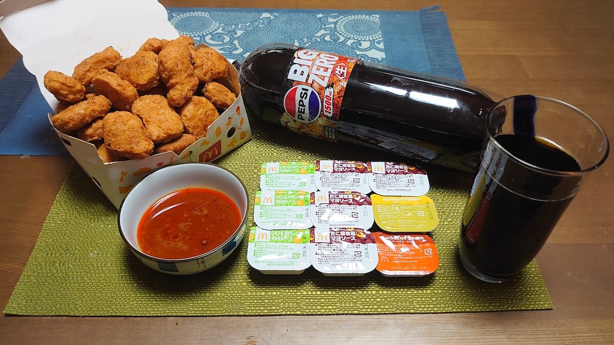 サイゾーウーマン暮らし食べ物マックナゲットの新ソースは微妙 暮らし 巨漢ライター【デカ盛り写真日記】 マックチキンナゲット、期間限定ソースは微妙! 和食さと季節限定のおすすめは?【デカ盛り日記】 2024/05/09 15:00 阿左美賢治(ライター) 巨漢ライター食日記 (C)サイゾーウーマン 糖質カットに励み、健康を意識した食生活を送る体重150kgを誇るグルメライターが、1週間の全食事内容を日記形式で紹介! ヘルシーとは? チートデイとは? さまざまなハテナな浮かぶ、怒涛の食生活に刮目! (なお、ところどころキャプションで担当編集のつぶやきが漏れています) 目次 ・4月29日(月)謎肉とカリフラワーライスのチャーハン山盛り! ・4月30日(火)チキンマックナゲット45ピース、揚げ直し! ・5月1日(水)ウェルシアのPB商品でリピートするのはコレ ・5月2日(木)ホルモンを油で揚げる禁断フードを1.2kg ・5月3日(金)「和食 さと」食べ放題、おすすめはコレ! ・5月4日(土)業務スーパー、冷凍のなすの挟み揚げを山盛り! ・5月5日(日)ベルクのアブラガレイでムニエル大量 4月29日(月) 謎肉とカリフラワーライスのチャーハン山盛り 朝食 ・生フランクホットドッグ×6 ・デルモンテ 野菜ジュース 業務スーパーの「こだわり生フランク ハーブ入り」おいしそう(写真:サイゾーウーマン) 冷凍庫にストックされていた「業務スーパー」の「こだわり生フランク ハーブ入り」をPascoの低糖質ブランロールに挟み、フライドオニオンを乗せたホットドッグを作りました。生フランクは最初に茹でたあと、フライパンではなく魚焼きグリルで焼いてみたところ、6本中5本も皮が破けてしまったので、次回からはちゃんとフライパンで焼こうと思います。 昼食 ・こだわり生フランクの残りを乗せたサラダ ・牛乳 夕食 ・謎肉とカリフラワーライスのチャーハン風 ・午後の紅茶 おいしい無糖 そういう炒めもの、って感じだね 低糖質でも謎肉だからヘルシーではないような…… まとめ買いした「謎肉放題」が1袋だけ余っていたので、カリフラワーライスと卵、ピーマン、長ネギと合わせて低糖質チャーハンを作成。独特の匂いがちょっと気になるカリフラワーライスですが、卵に包むことで比較的気にならなくなります。そこにダメ押しで先週の「よだれ鶏」につかったタレの余りをかけました。肉や米が代替品でも、やっぱりチャーハンっておいしい! 4月30日 チキンマックナゲット45ピース、揚げ直し! 朝食 ・サバ缶×2 ・スクランブルエッグ ・デルモンテ 野菜ジュース 昼食 ・日乃屋カレー生玉子 ・三種の野菜 「日乃屋カレー」に取材に訪れ実食。詳しくはこちらをご覧ください! 「文春」スキャンダル、閉店目立つ【日乃屋カレー】――実際に食べて驚がくしたワケ 2012年に創業、翌年の13年には日本最大級のカレーの祭典である「神田カレーグランプリ」で優勝し、その後同グランプリ初となる殿堂入りを果たした「日乃屋カレー」。し...サイゾーウーマン2024.05.07 夕食 ・チキンマックナゲット 45ピース ・ペプシ<生> BIG ZERO 手間を惜しまないですごい(写真:サイゾーウーマン) 手前の器に入った赤いソースが怖いよ!(写真:サイゾーウーマン) マクドナルドでチキンマックナゲット15ピース490円のセールをやっていたため、45ピース購入。帰宅してから食べようとすると、ちょっとヘニャヘニャになっていたので揚げ直しました。「これなら普通に冷凍のナゲットを買えばいいのでは……?」とも思いましたが、安定のおいしさだったのでまあよし! でも期間限定のソースは2つとも微妙でした。 5月1日 ウェルシアのPB商品でリピートするのは? 朝食 ・からだWelcia 糖質を抑えたミニクロワッサン×4 ・からだWelcia 糖質を抑えたミニチョコクロワッサン×4 ・からだWelcia つづけたくなる脂肪ゼロヨーグルト ・デルモンテ 野菜ジュース ウェルシアのヨーグルトは◎(写真:サイゾーウーマン) 前日の買い出しで、近所のドラッグストア「ウエルシア」で、前から気になっていた低糖質クロワッサン2種と、ヨーグルトを購入していたため、さっそく試してみました。クロワッサンは低糖質であることを考えれば全然おいしい部類だけど、Pascoの低糖質クロワッサンの方が個人的には好み。ヨーグルトは価格のわりにおいしかったので、またリピートします。 昼食 ・目玉焼き×5 ・大根サラダ ・牛乳 夕食 ・バンバンジー ・セブンプレミアム ゼロサイダートリプル ファイバー 団体客用かバイキング用の量だもん(写真:サイゾーウーマン) 暑い日が続いていたため、何かさっぱりしたものが食べたくなり鶏肉ときゅうりを購入しバンバンジーを作ることに。基本的にはさっぱりしたむね肉やささみが使われることの多いものの、食べ応えのあるもも肉派も少なからずいる印象のある同メニューですが、両方とも乗せたらお互いのいいところを味わえてお得だと思うので、筆者はいつも“両乗せ派”です。 5月2日 ホルモンを油で揚げる禁断フードを1.2kg 朝食 ・チーズトースト ・大根サラダ 