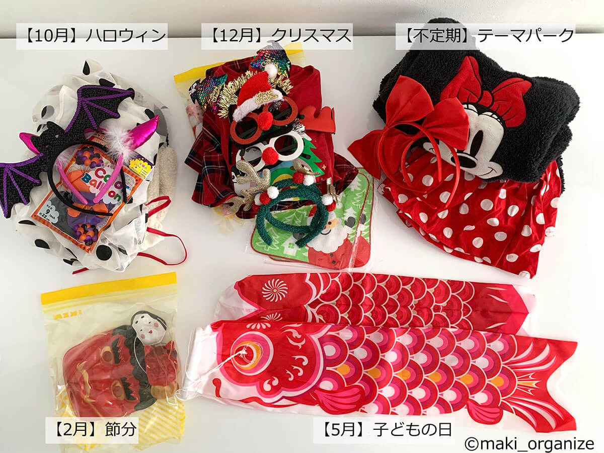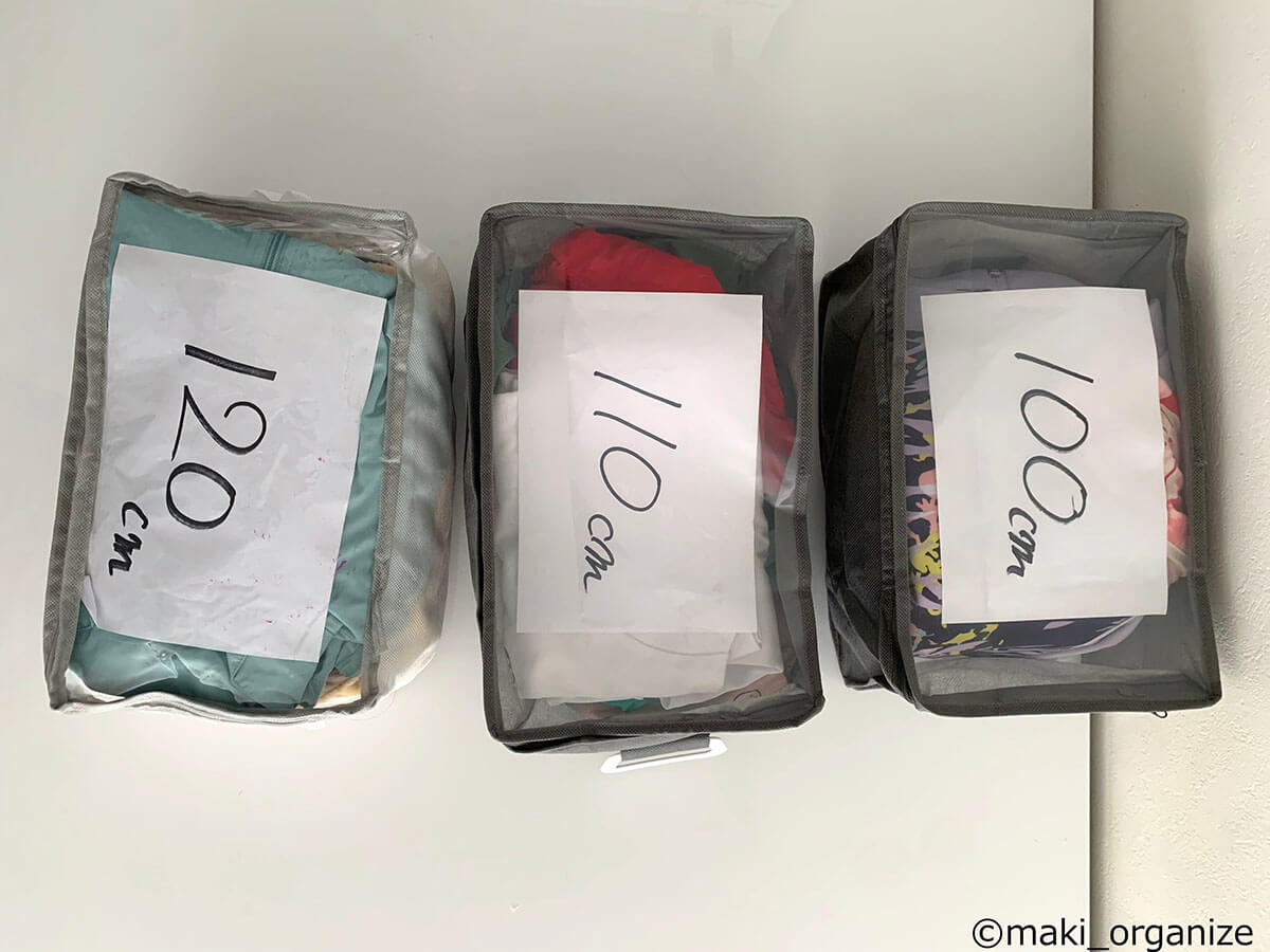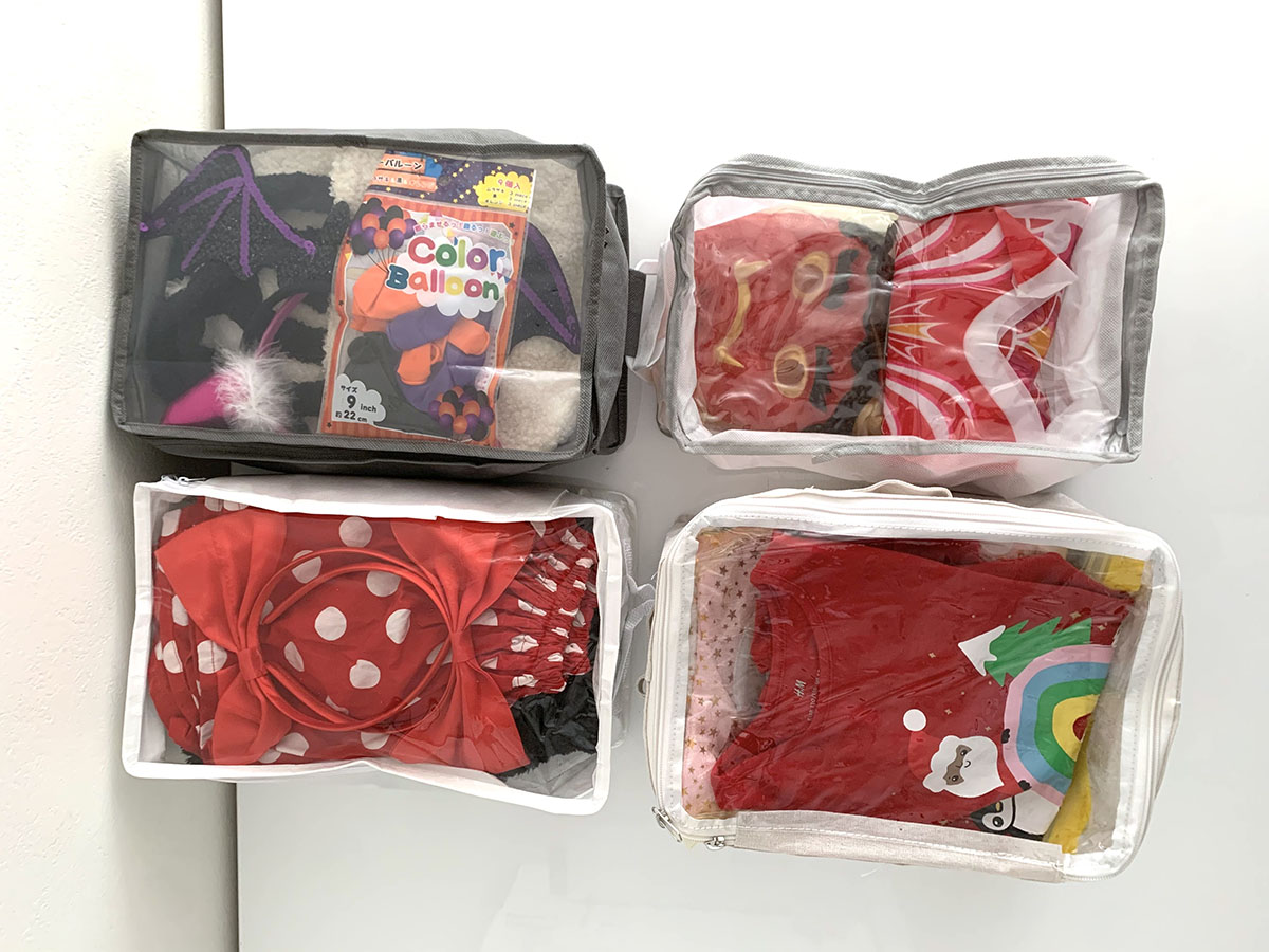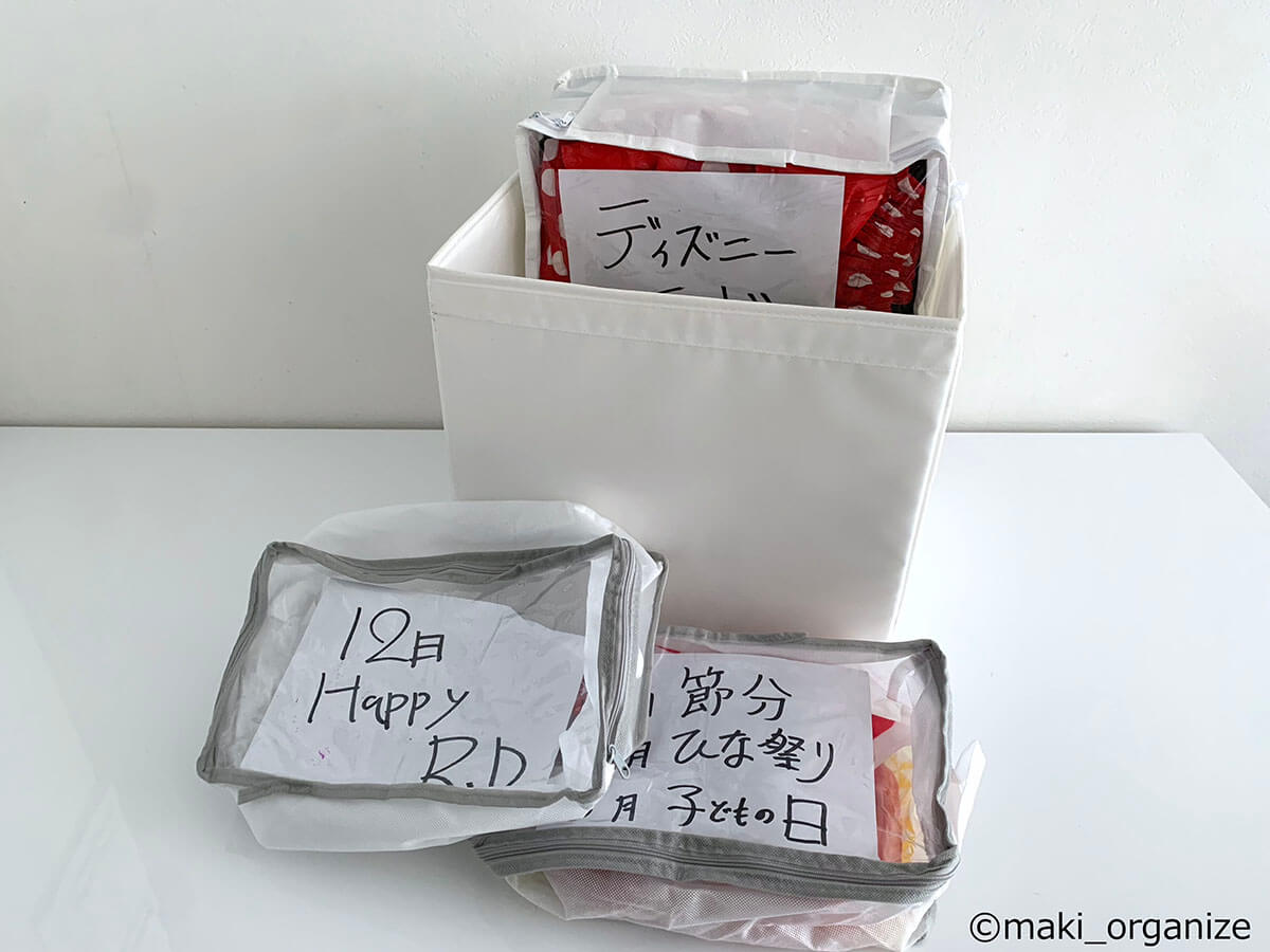 サイゾーウーマン暮らし住まい【アクセ収納】ダイソーと無印を比較 暮らし [連載]女たちの「煩悩部屋」ビフォーアフター 【100均】「コミック保管袋」、こどもの日アイテム収納にベスト! プロの活用実例は? 2024/05/15 17:00 伊藤まき(収納ライター) 「汚部屋」ビフォーアフター 整理収納アドバイザー1級で収納ライターの伊藤まきさんが、家の中の “片付け”に関する悩みを“安く・簡単”に解決するコツを紹介します! 目次 ・【テーマ】イベント服&雑貨を収納 ・【100均 窓付き収納袋】ダイソー・セリア・ワッツ ・【イベント服&雑貨】収納実例&応用編 ・【ダイソー】布製ストレージボックス ・【セリア】窓付きコミックス収納袋 ・【ワッツ】コミック 収納袋(グレー) ・【ダイソー】文庫本 収納袋 【テーマ】100均「窓付き収納袋」でイベント服&雑貨を収納 (C)maki_organize 今回のテーマは「季節のイベント服&雑貨の収納」。5月の子どもの日、10月のハロウィン、12月のクリスマス、不定期のテーマパークといったように、日本の家は「イベント用の服と雑貨」であふれています。 1年に一度しか使わないものの、種類が多くなると管理するのも大変ですよね。そこでおすすめなのが、衣替えのタイミングで「中身が見える収納」に変えておくこと! 使い勝手がよくなり、管理も簡単になります。 収納アイテムとしておすすめなのは、100均の「窓付き収納袋」。今回はダイソー・セリア・ワッツで買える4品の特徴と使い方の実例をご紹介します。 【NG収納】中身が見えないから存在を「忘れる」 「ここにあったんだ」と驚く家も多い(C)maki_organize 写真は片付けで訪問するお宅でよく見る「NG収納」です。イベントで着た洋服や雑貨を、家にある袋にざっくりまとめている状態。「中身が見えない」ので、持っていることを忘れて二度買いしているパターンも多いように感じます。 こちらのNG収納を100均で買える「窓付き収納袋」を使って手直ししていきます。 【100均 窓付き収納袋】ダイソー・セリア・ワッツで4品を用意 100均「キャンドゥ」にも取り扱いがあります(C)maki_organize ダイソー、セリア、ワッツで「窓付き収納袋」を用意しました。おもにコミックや文庫本などを保管するための収納アイテムです。 【1】ダイソー「布製ストレージボックス(フタ付き)」220円(税込) 【2】セリア「窓付きコミックス収納袋 B6判用」110円(税込) 【3】ワッツ「コミック 収納袋(グレー)」110円(税込) 【4】ダイソー「文庫本 収納袋」110円(税込) 【100均 窓付き収納袋】ダイソー・セリア・ワッツ、サイズ感と素材は? (C)maki_organize 奥行きはすべて30cm前後。「靴箱」のようなサイズ感です。 ちなみに100均で購入できる収納袋のほとんどは「不織布製」ですが、【1】のダイソーは布製、【2】のセリアはビニール製。不織布よりも安定感があるのが特徴です。 【イベント服&雑貨 収納実例1】種類別にまとめて「見える収納」に 必要なときに、探さずに出し入れできます(C)maki_organize 子ども2人分のイベント服と雑貨を、種類別にまとめて収納しました。中身が見えれば、家族みんなが洋服の管理に参加できます。 【イベント服&雑貨 収納実例2】紙を1枚入れておく IKEAのスクッブボックス(W31×D34cm)にぴったり収まるサイズ(C)maki_organize コミックサイズ(30cm前後)の「窓付き収納袋」を選ぶ理由は、クローゼット上段用の収納ケースに入れやすいサイズだからです。 写真のように紙を1枚入れておくと、より中身が分かりやすくなって◎ 。普段使いの衣類と分けて、クローゼット内にスッキリ収納できます。 応用編【子どものお下がり服 収納実例】サイズ別にわかりやすく管理 マタニティグッズも、同様の保管方法がおすすめ(C)maki_organize 「窓付き収納袋」は、子どもの「お下がり服の管理」にも◎。サイズ別でわかりやすく管理できます。使用イメージを動画にしていますので、参考にしてみてください。洋服の種類が多いほど、目的・サイズ・時期で仕分けると良いですね。 今回は、「コミックサイズ」を紹介しましたが、量が多くてかさばるなら「ジッパー付き保存袋」もおすすめです。 ダイソーとセリアから登場! 収納のプロたちが歓喜「フタ付クリアボックス」詳細紹介【サイズ・色・使用実例】整理収納アドバイザーの伊藤まきが、片付けに訪問した現場で「よくやる作業」「よく伝えるおすすめ収納法」を【プロの技】シリーズとして紹介していきます! ダイソーとセリア「クリ...サイゾーウーマン2022.03.28 最後に、今回使用した「窓付き収納袋」の特徴をそれぞれご紹介します。 【1】ダイソー「布製ストレージボックス(フタ付き)」220円(税込) JANコード:4550480229829(C)maki_organize 布製で取っ手が2箇所に付いています。ジッパーも金具なので、長く保管したいモノを保管するのにおすすめです。 【2】セリア「窓付きコミックス収納袋 B6判用」110円(税込) (C)maki_organize ビニール製なので、不織布よりも安定感があります。セリアは「窓付き収納袋」の種類が豊富