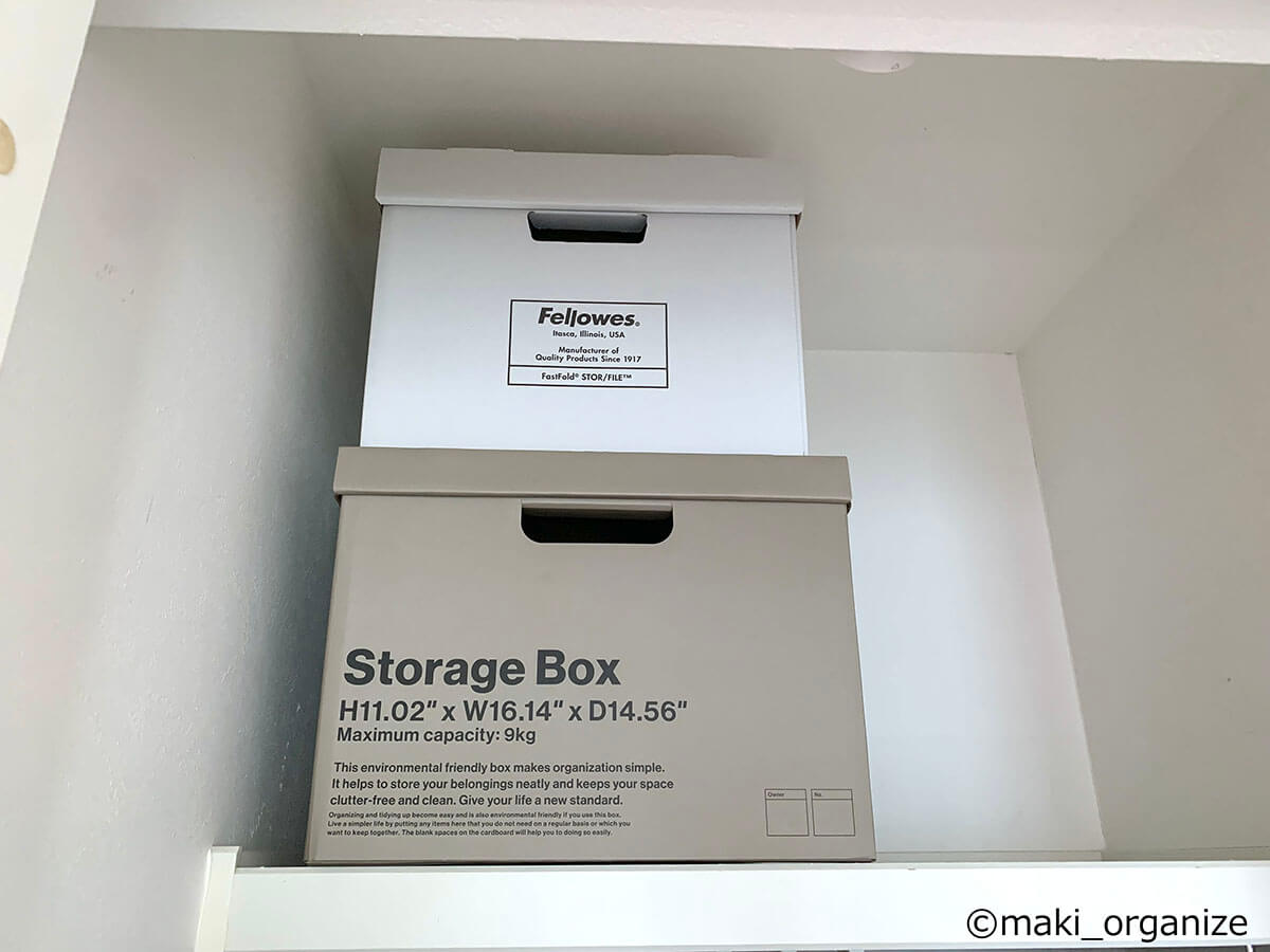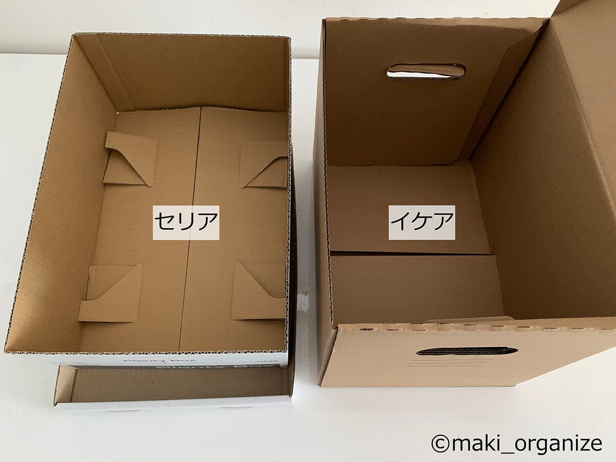 サイゾーウーマン暮らし住まいプロが4種の「段ボール収納BOX」比較 暮らし [連載]女たちの「煩悩部屋」ビフォーアフター 【イケア】199円「蓋付き段ボール」はアレにぴったり! プロが4種の収納BOXを徹底比較 2024/05/29 17:00 伊藤まき(収納ライター) 「汚部屋」ビフォーアフター 整理収納アドバイザー1級で収納ライターの伊藤まきさんが、家の中の “片付け”に関する悩みを“安く・簡単”に解決するコツを紹介します! 目次 ・【テーマ】「蓋付き段ボールBOX」で長期保管 ・【イケア】パピス ふた付きボックスのメリット・デメリット ・【フェローズ】バンカーズボックスのメリット・デメリット ・【スタンダードプロダクツ】ストレージボックスのメリット・デメリット ・【セリア】プレンティボックスのメリット・デメリット ・【まとめ】目的に合わせて使い分けを! 【テーマ】「蓋付き段ボールBOX」で長期保管 保管品の重さ・期間・頻度・コスパ・収納する場所などにあわせて選ぶと◎(C)maki_organize 今回のテーマは思い出の品やアルバムなど「長く保管したいモノの収納」。引越し会社の段ボールをそのまま使っているお宅も多いですが、蓋をガムテープで閉じる必要があり、開閉には向いていません。 そこでおすすめなのが、「蓋付き段ボールBOX」。開け閉めしやすいので中身の見直しや追加が簡単なだけでなく、スタッキングOKなので収納空間をうまく活用することができます。 次からは、イケア・フェローズ・スタンダードプロダクツ・セリアで買える4品のメリットとデメリット、使い方の実例をご紹介していきます。 【イケア】ほど良いサイズの「パピス ふた付きボックス」 定番商品なので同じ大きさで揃えやすい(商品番号)301.886.56(C)maki_organize イケアの「パピス ふた付きボックス」199円(税込)です。厚みがしっかりしていて頑丈なので、スタッキング収納に向いています。 【メリット】上げ下げが簡単なので「増える」モノの管理に◎ 卒業アルバムやレコードなど、A4サイズ以上のモノはNG(C)maki_organize A4書類がちょうど良く収まるサイズ感。大きすぎないので、クローゼット上段にも載せやすい点がメリットです。女性ひとりでも上げ下げが簡単なので、コレクターズアイテムやDVD、写真など「増える」モノの管理に向いています。 【デメリット】車なしでは持ち帰るのが難しい 組み立て前はこんな感じ(C)maki_organize 平たい段ボールのまま販売しているので、車なしでは持ち帰りにくい点がデメリット。車移動できなかったり、店舗が遠方という方にはおすすめが難しいと感じます。 【フェローズ】頑丈な「バンカーズボックス」 (C)maki_organize フェローズ「バンカーズボックス 703S」3,094円(税込)です。アメリカの銀行や公共施設で昔から使われてきたパイオニアブランドとして知られています。 【メリット1】頑丈なので「大切な思い出の品」の保管に最適 A3サイズの紙製品が入ります(C)maki_organize 耐荷重は約30kg、5個までスタッキング可能という頑丈さが強み。子どもや家族の思い出の品など、何十年にも渡って保管したいアイテムを収納するのに向いています。 【メリット2】組み立てしやすく買いやすい! (C)maki_organize わずか「数秒」で組み立てができるのも魅力。ネット通販で簡単に買えるので、買い揃えやすいという点も◎です。 【デメリット】出し入れが頻繁なモノの収納には不向き 筆者宅でも20年近く愛用。2017年のリニューアルでさらに頑丈に(C)maki_organize 写真のようにクローゼット上段の高さが60cmある場合は、空間を2分割して置くことが可能です。ただし、出し入れが頻繁なモノの収納には不向き。重たくなるので上げ下げが大変になります。どちらかというと、物置などでの「永久保管」に向いていると言えるでしょう。 【スタンダードプロダクツ】インテリア性が高い「ストレージボックス」 3色から選べる(商品番号)4550480185040(C)maki_organize スタンダードプロダクツ(ダイソー系列)の 「ストレージボックス」550円(税込)。写真のくすみ系ベージュのほか、白と青の3色から選べます。 【メリット】「くすみ系カラー」でおしゃれに収納できる フェローズと比較するとひとまわり大きめ(C)maki_organize 550円(税込)とリーズナブルな価格ながら、デザイン性が高い点がポイント。インテリアへのこだわりが強い方におすすめしたいアイテムです。 【デメリット】何かに当たると「凸凹」ができやすい 手荷物の持ち帰りにも対応している梱包(C)maki_organize 何かに当たると凸凹がつきやすいかなという印象。ちょっとした衝撃で凹みが付いたので、「軽めのモノの収納」に向いています。手荷物で持ち帰れるように梱包されていますが、障害物にぶつからないよう注意が必要です。なお、筆者が聞いた時点では、配送での受け渡しは不可とのことでした。 (C)maki_organize フェローズと厚みを比較してみました。似ているようですが、段ボールの構造自体が違うため、比べてみると造りは弱め。 【セリア】110円! 圧倒的